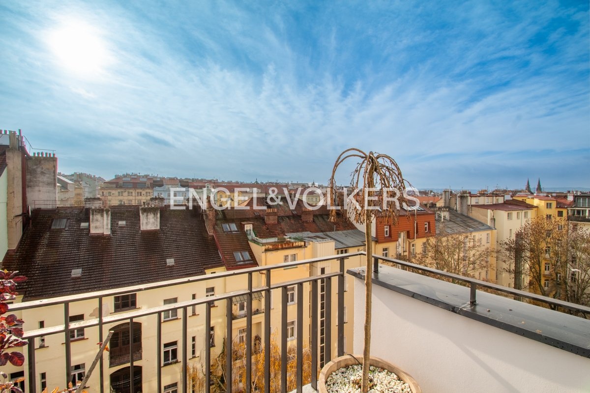 Zrekonstruovaný penthouse 5+1 se třemi terasami u Riegrových sadů