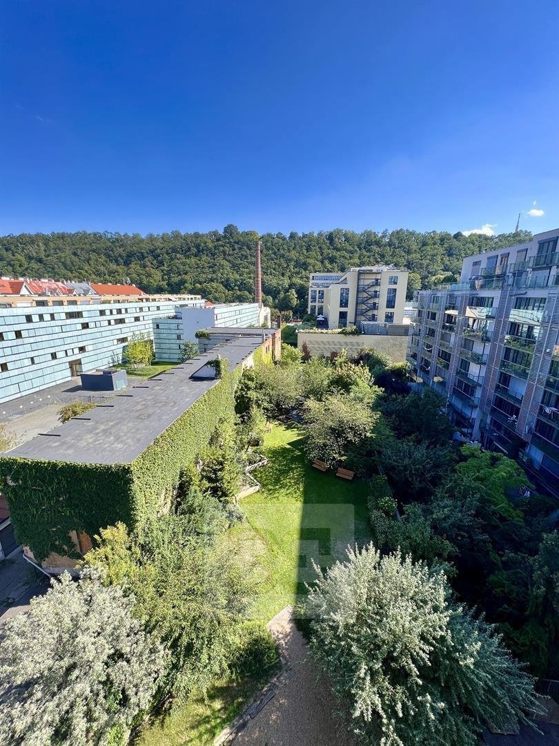 Obrovskou devízou tohoto projektu je komunitní zahrada, která je k dispozici pouze uživatelům tohoto projektu, kde je altán s grilem, dětské hřiště atd., a taktéž recepce fungující 24/7. Poplatky činí 3.000,- Kč/měs. + spotřeba el.energie a plynu. K bytu přísluší garážové stání (v ceně). Koupelna je vybavena pračkou. Dlouhodobý pronájem vítán.