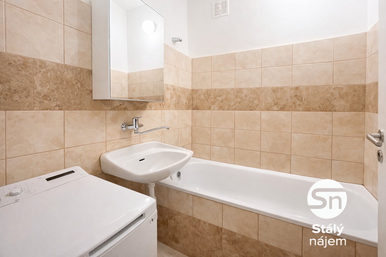 Byt je ve dobrém stavu a před nastěhováním bude nově vymalovaný. Dispozičně je velmi prakticky řešený a nabízí dostatek prostoru pro pohodlné bydlení jednotlivce nebo páru. Ložnice bude vybavena šatní skříní, druhý pokoj gaučem a skříní, přičemž černý pracovní stůl a postel na fotografiích nejsou součástí podnájmu. Kuchyň je vybavena plynovým sporákem, elektrickou troubou, lednicí s mrazákem a k dispozici je také pračka.