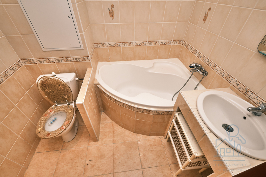 Dispozičně je řešen jako předsíň, koupelna s vanou, obývací pokoj s kuchyňským koutem a samostatná ložnice.