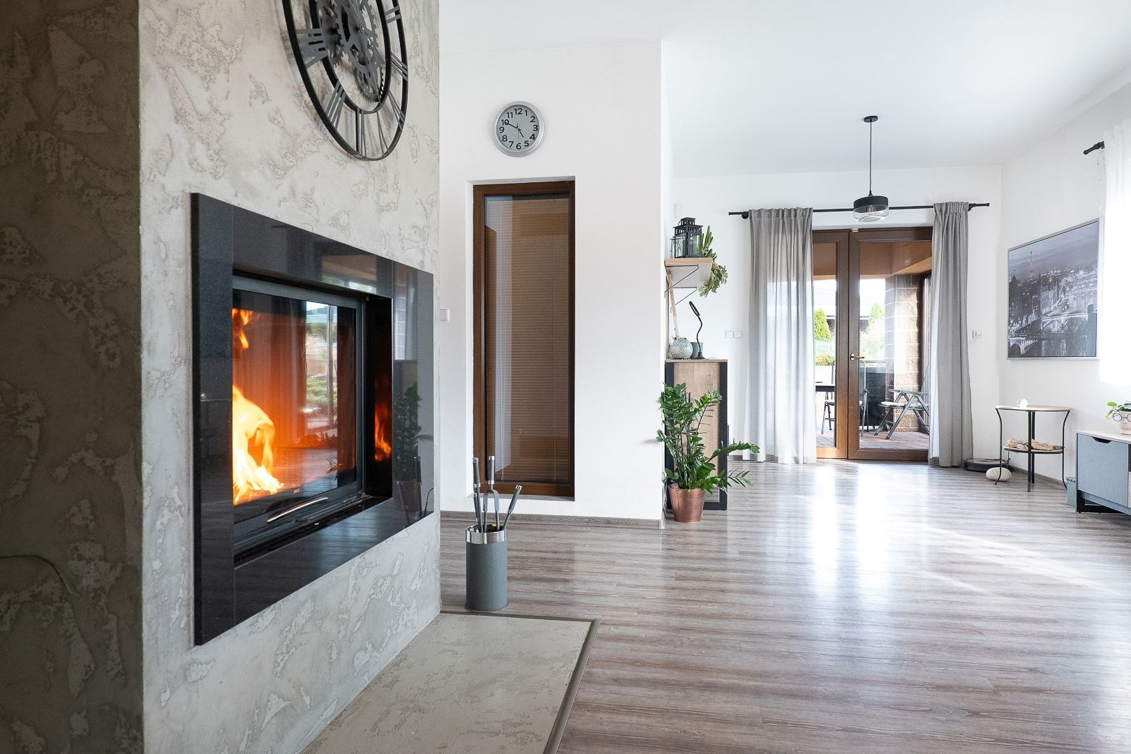 Dominantou domu je velký obytný prostor s krbem s teplovodní vložkou, který vytváří příjemnou atmosféru a zároveň šetří náklady na vytápění.