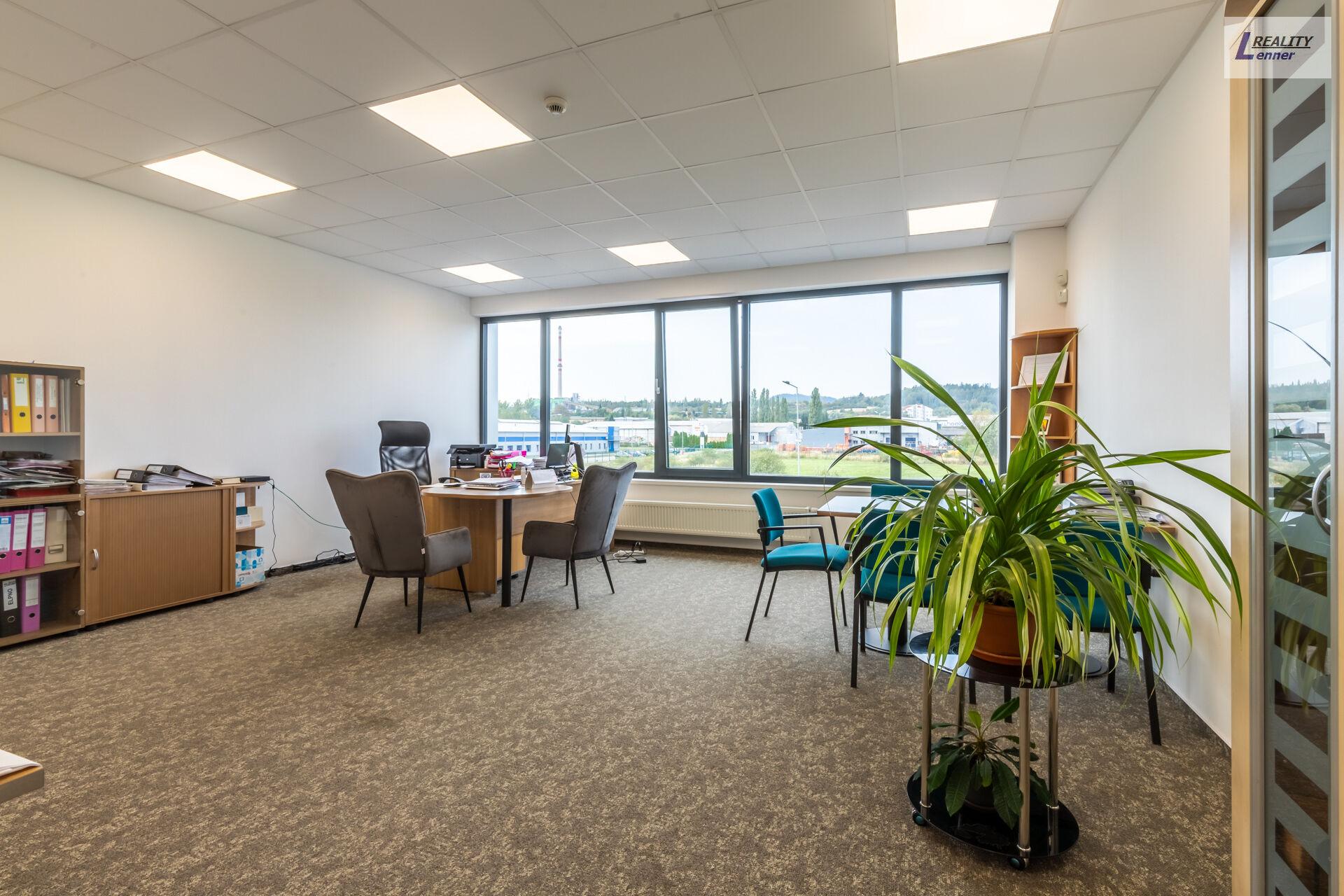 V první patře areálu se nachází cca 300 m2 kancelářských prostor a příslušenství: oddělení nákupu, oddělení kvality, vedoucí výroby, kancelářské místnosti, spisovna, zasedací místnost, serverovna, kuchyňka atd.