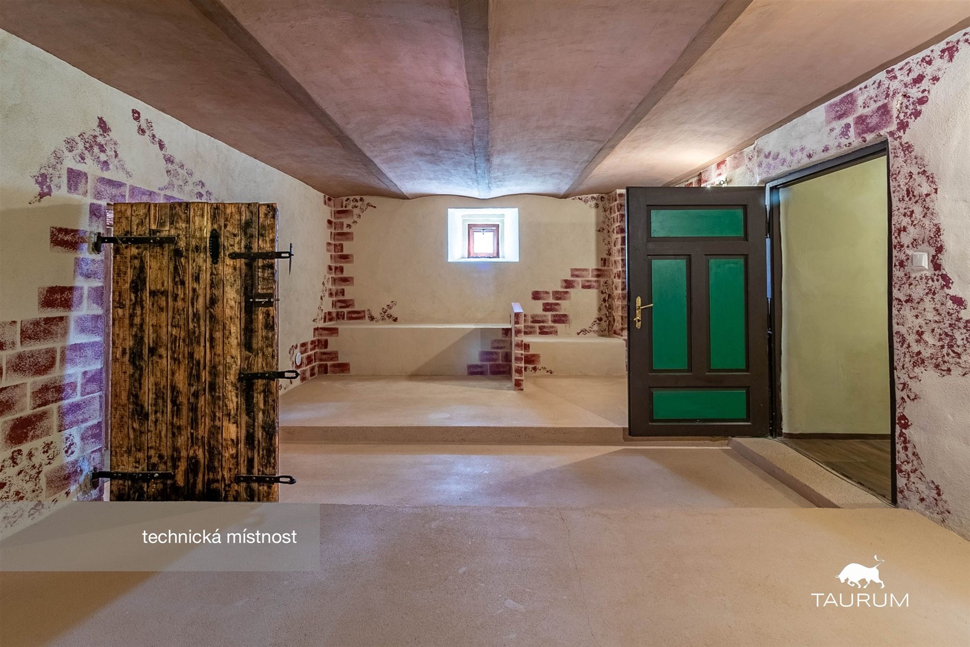 Hlavní obytná budova je dvoupodlažní, nepodsklepená. V přízemí je 5 pokojů, 1 technická místnost, kuchyně, koupelna a krásná stylová zahradní kuchyně s linkou z masivu, udírnou a s krbem s otevřeným ohništěm.