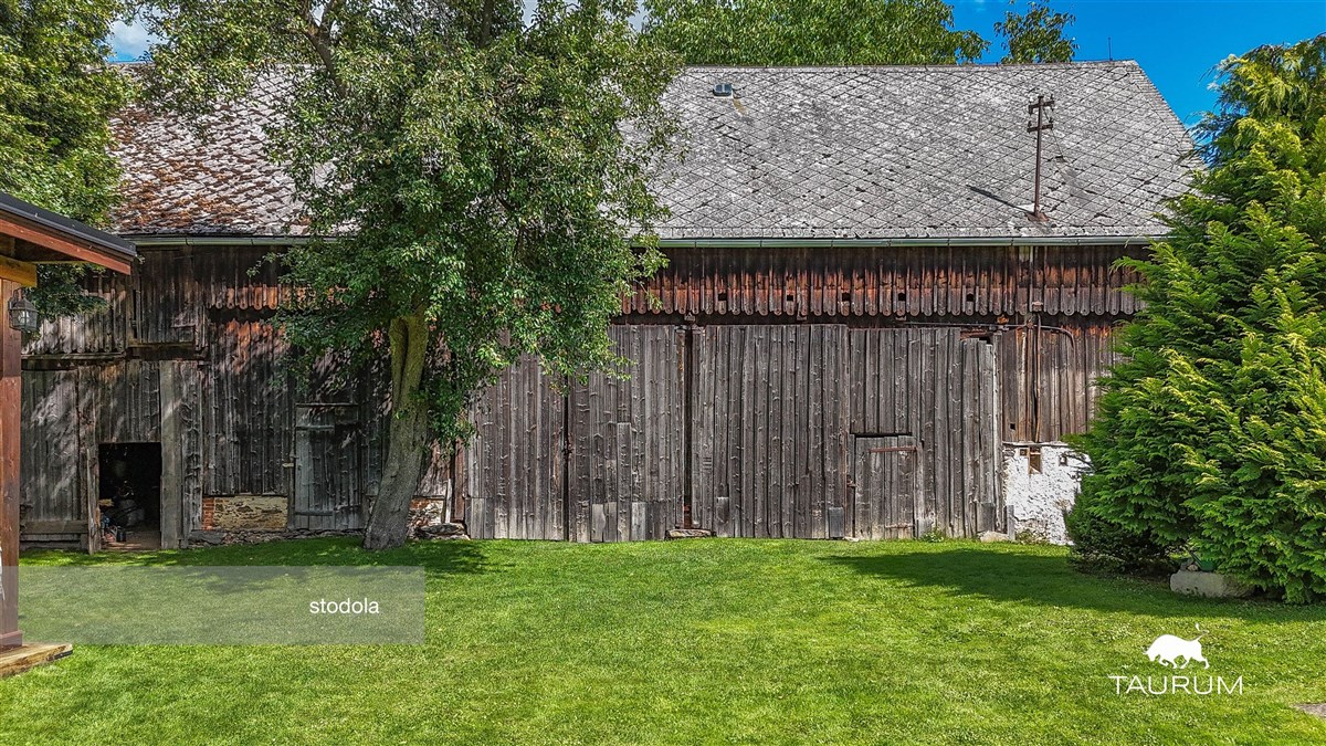 Jedná se o původní vesnické stavení, u kterého stojí druhá stavba (garáž v přízemí, obytný prostor v patře a navazující terasa s pergolou) také po rekonstrukci. Další stavba je 3 patrová krásná stodola z roku 1908 s bočním polozapuštěným sklepe. Rozmístění staveb i samotné umístění domu a zahrady zajišťuje jako velmi dobrý přístup, tak i soukromí a klid.
