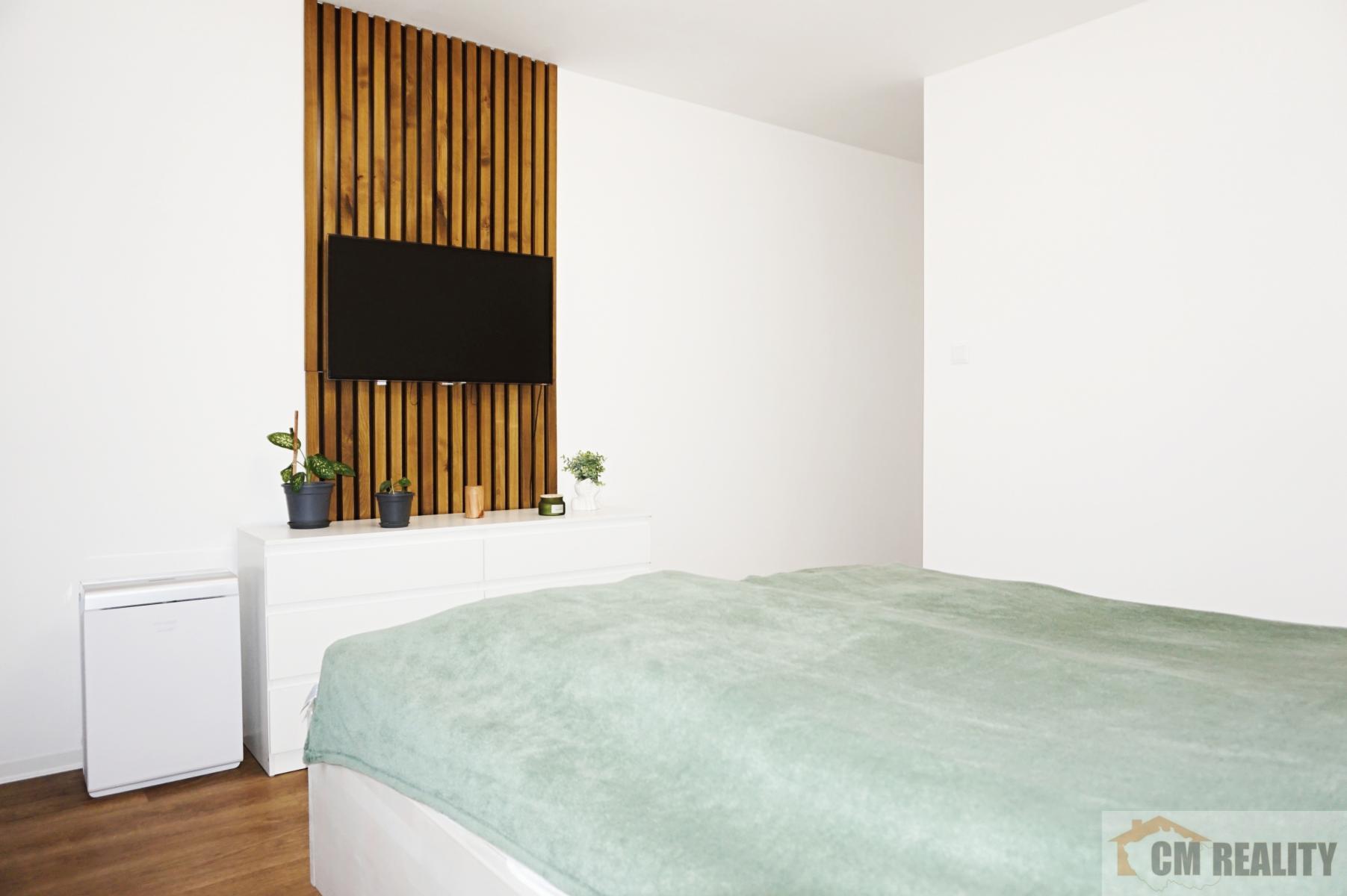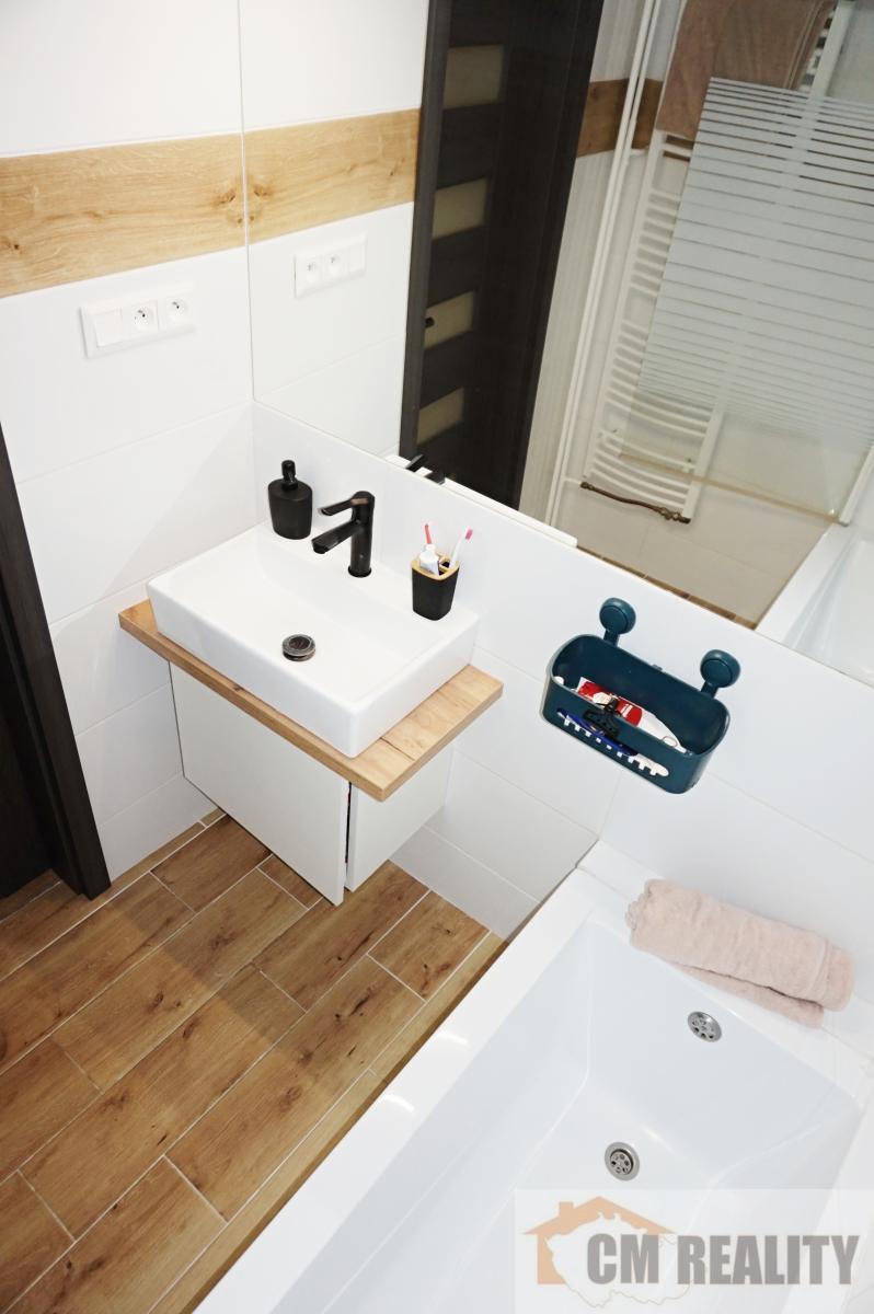 Byt má velmi dobrou dispozici s neprůchozími prostornými pokoji a prostornou kuchyní, která je po změně dispozice bytu propojena s obývacím pokojem. Po vstupu do bytu Vás uvítá prostorná široká chodba s velkým botníkem hned u vstupu a velkou vestavěnou šatní skříní v zadní části chodby. V koupelně je vana se skleněnou zástěnou a umyvadlo se skříňkou. V kuchyni je kuchyňská linka na míru s vestavěnými spotřebiči. Byt prošel celkovou nákladnou a velmi zdařilou rekonstrukcí. Nové podlahy, nová elektroinstalace, nábytek a stolářské dekorační prvky jsou zhotoveny na míru, vč. praktického pracovního koutu v obývacím pokoji. Koupelna a WC jsou také po celkové rekonstrukci (nové odpady, zařizovací předměty, obklady, dlažba). V ložnici byla změnou dispozice vybudována menší šatna.