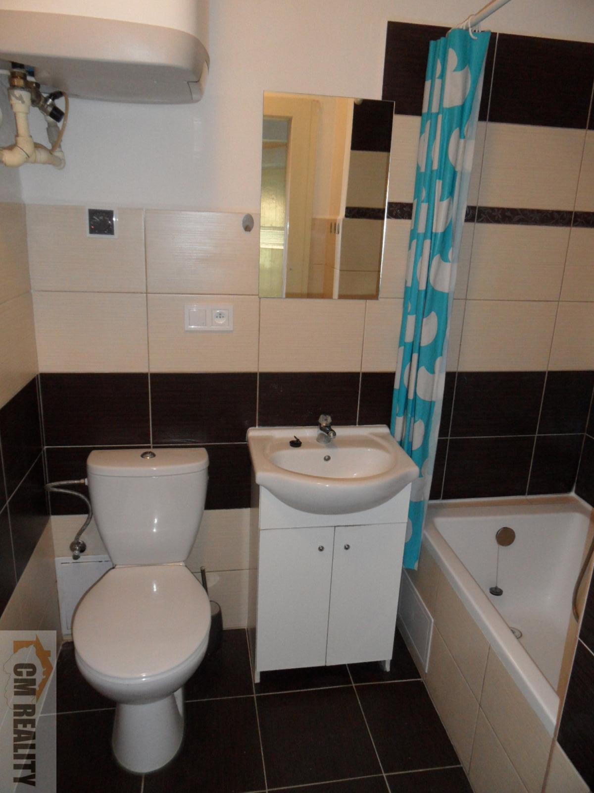Nabízíme k dlouhodobému pronájmu byt o dispozici 2kk o výměře 50 m2, situovaný ve 2. patře cihlového bytového domu. Po vstupu do bytu je menší vstupní chodba, ze které je vpravo obývací pokoj s kuchyňským koutem, vlevo z chodby je ložnice a naproti vchodových dveří bytu je menší koupelna společná s WC. V koupelně se nachází umyvadlo s umyvadlovou skříňkou, menší vana, WC a prostor pro pračku s horním plněním. V kuchyni je kuchyňská linka s vestavěnou varnou deskou a vestavěnou troubou zn. BOSCH a digestoř. Ohřev vody je elektrickým bojlerem, vytápění bytu je zajištěno stropními panely.