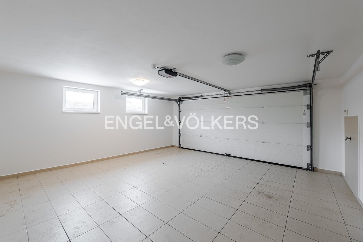 Součástí domu je také dvojgaráž a veškeré technické vybavení, které zajišťuje pohodlné každodenní fungování: telefonní linka, alarm s možností napojení na bezpečnostní službu, rozvody pro TV/SAT, kompletní osvětlení, plynové ústřední vytápění, parketové a keramické podlahy.