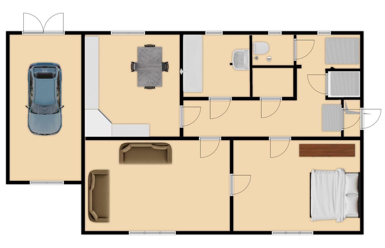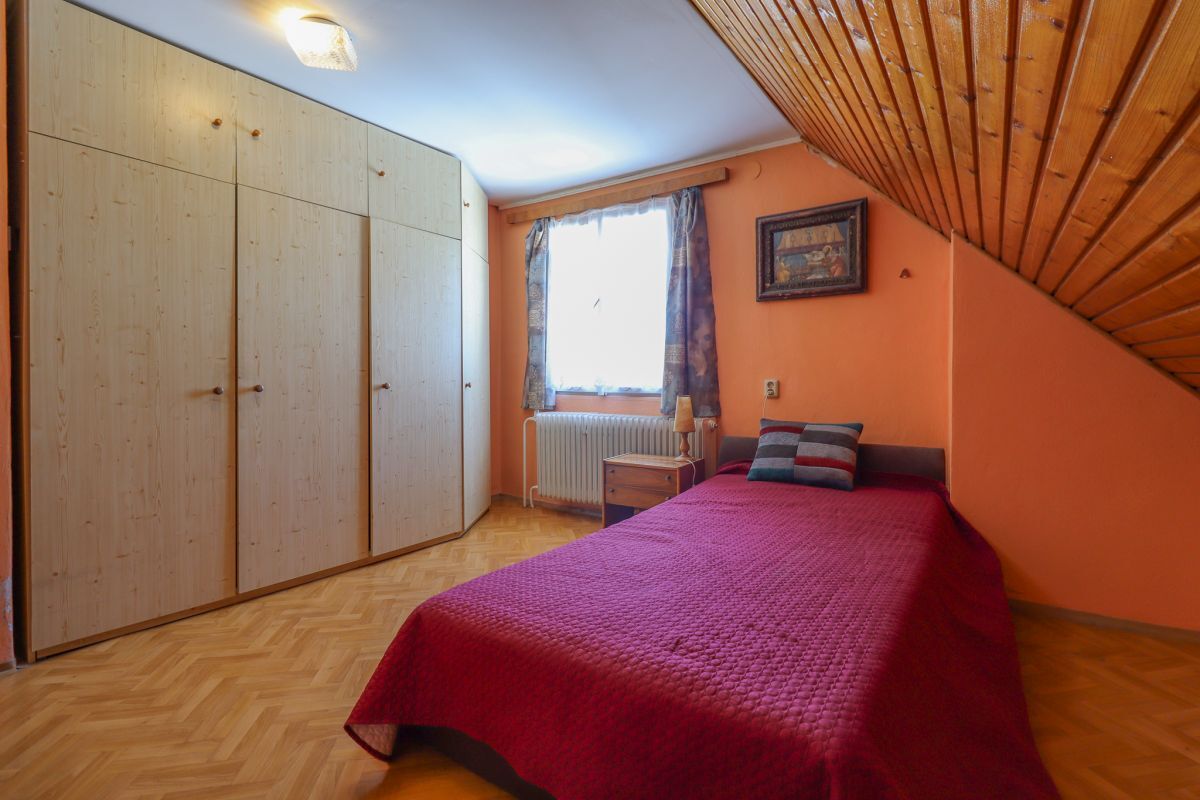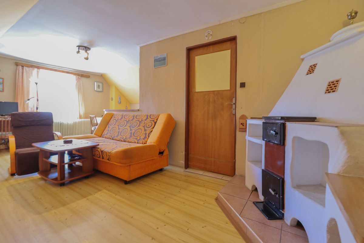 Ve zvýšeném přízemí se nachází předsíň /chodba, odtud se vstoupí do podkrovních místností i sestoupí do sklepních prostor. Vnitřní dispozice o obytné ploše cca 120 m2 s celkovou plochou pozemku 336 m2. Přízemí 2+1: kuchyně se sporákem na PB s kuchyňskou linkou, obývací pokoj, ložnice, spíž, koupelna s vanou a samostatné WC. V patře 2+kk: chodba, menší kuchyňka propojená s obývacím pokojem a s kamny na TP ve stylu staročeské pece. Dále ložnice, koupelna s vanou, umyvadlem, boilerem a WC. Pod celou obytnou částí se nachází sklepní prostory: kotelna, dílna, spíž, prádelna.