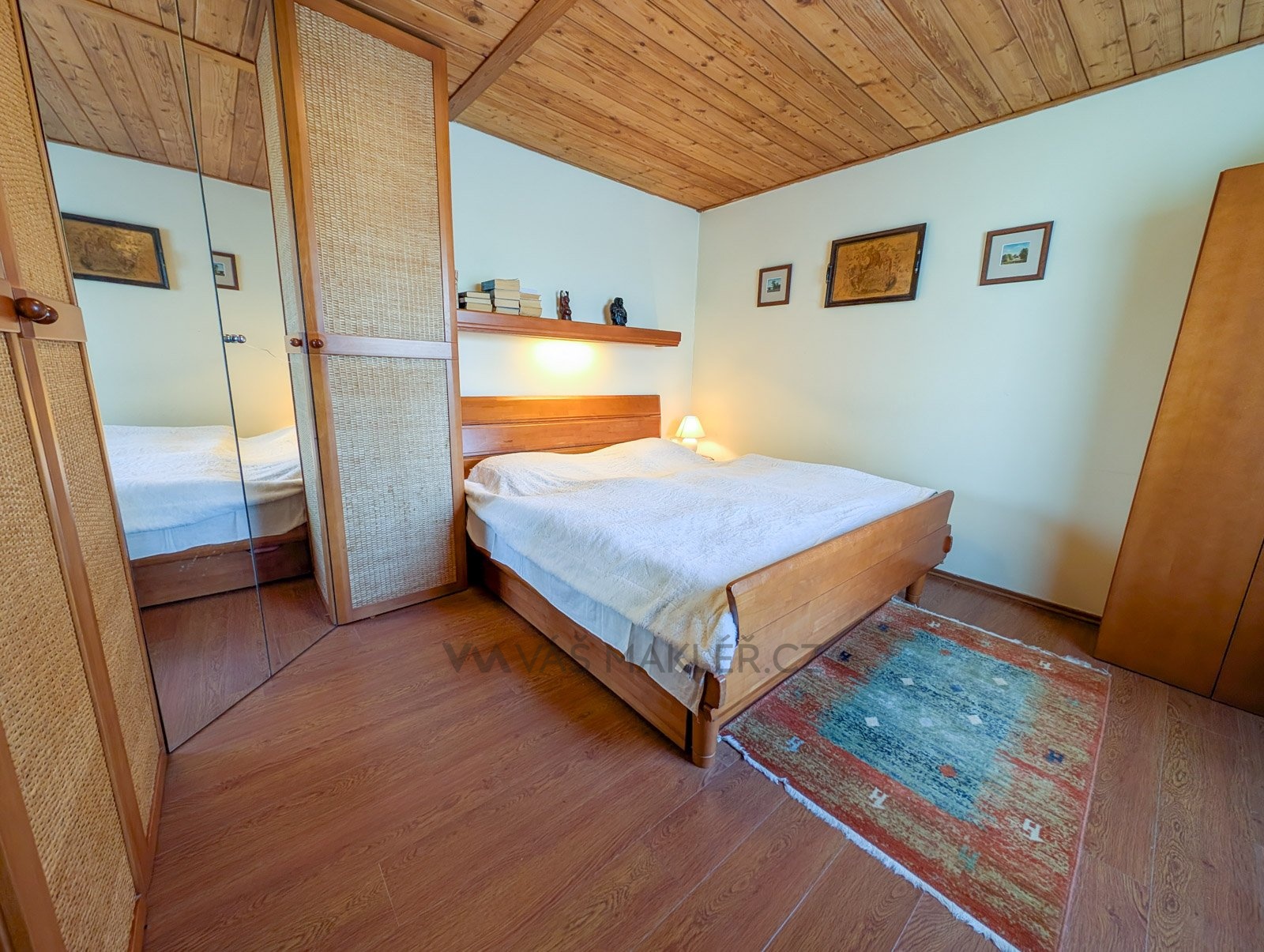 technickým zázemím a sklepem. V prvním patře se nachází 2x ložnice, prostorný obývací pokoj