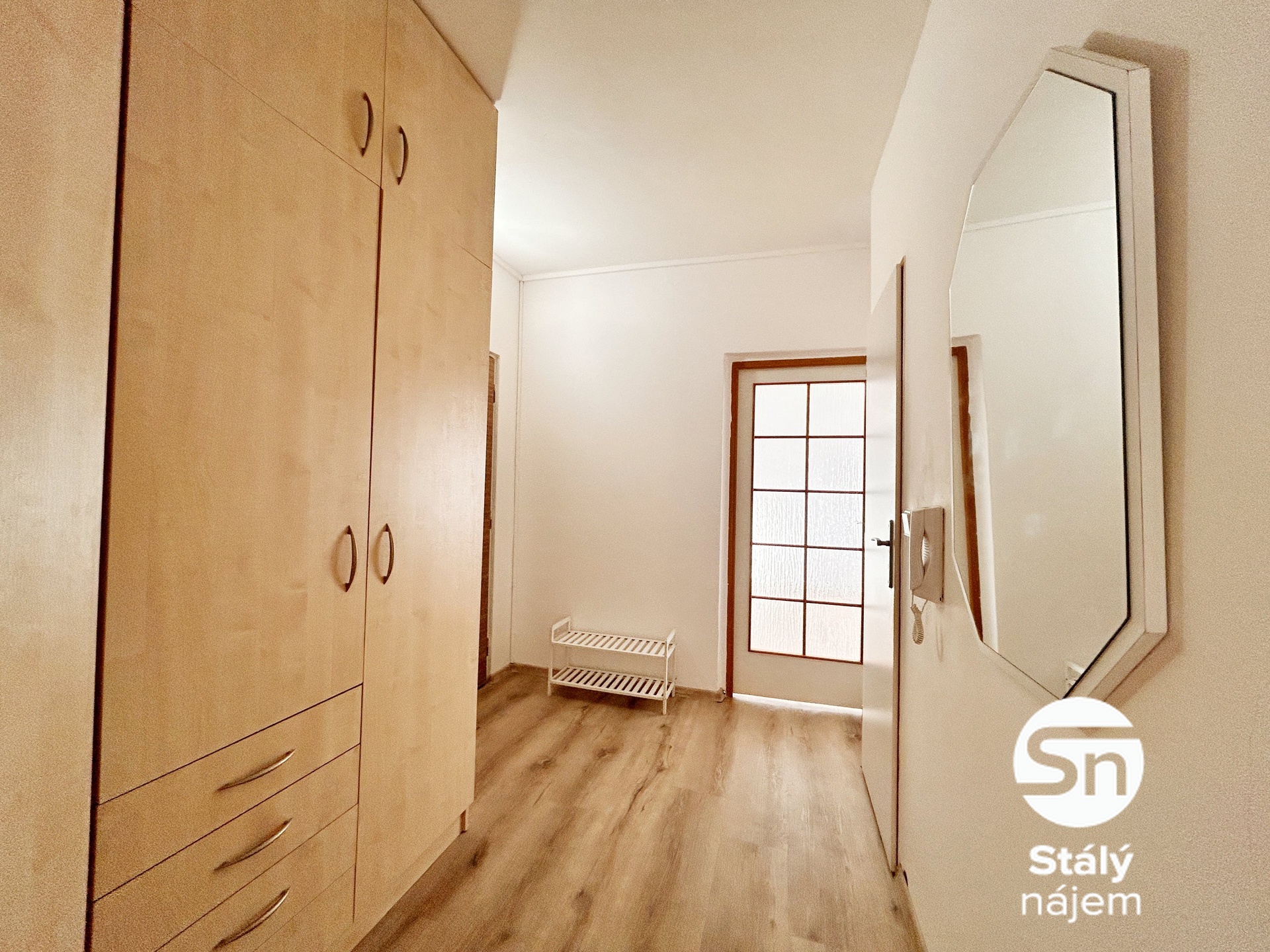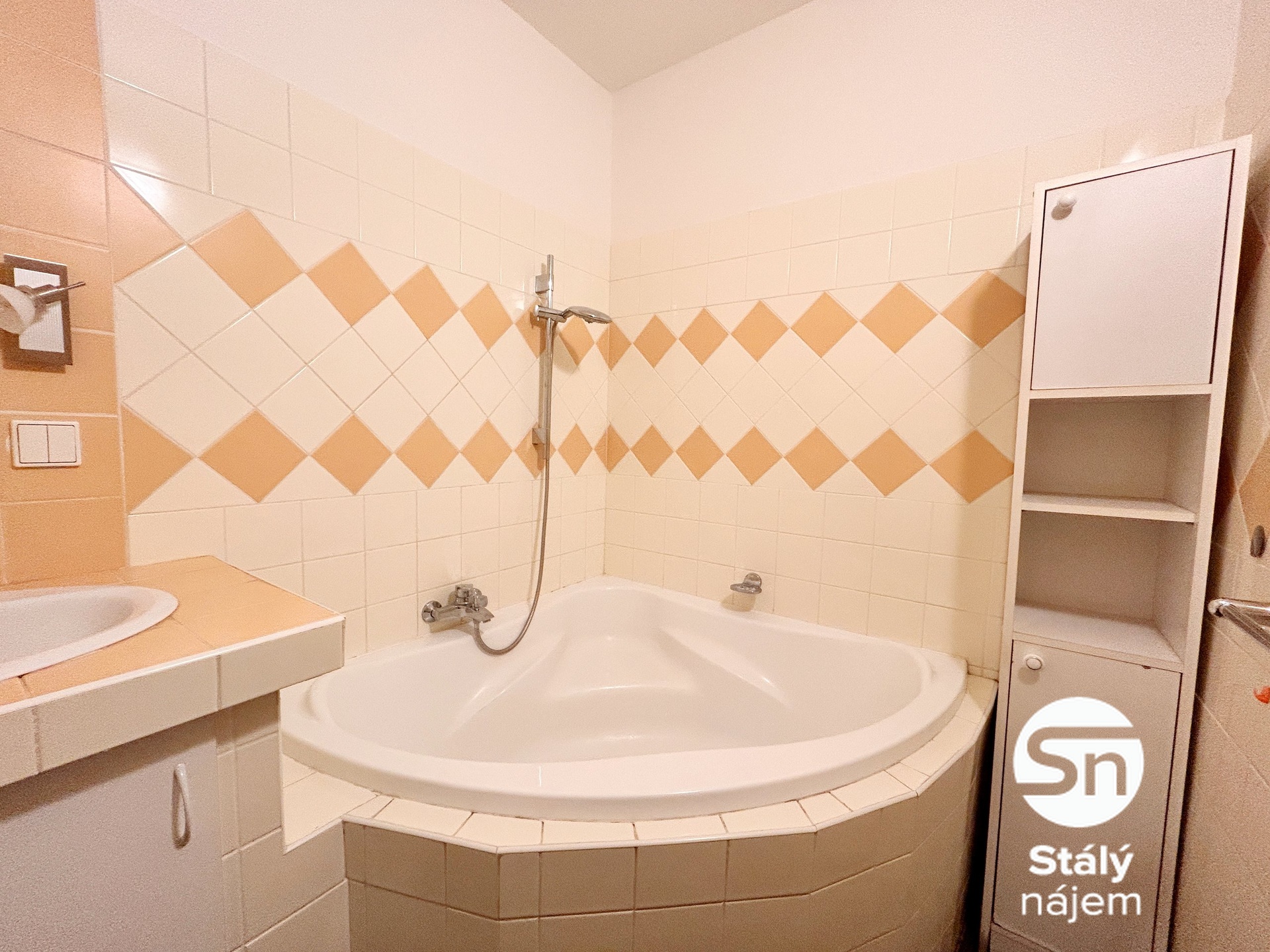Součástí je funkční kuchyňská linka se spotřebiči a po domluvě je možné ponechat i volně stojící skříň. Ostatní nábytek lze jednoduše odstranit dle přání nového podnájemce. Dispozice zahrnuje samostatnou kuchyň, dva neprůchozí pokoje, koupelnu s rohovou vanou a samostatné WC. Velká okna zajišťují dostatek denního světla a z bytu je příjemný výhled na okolní zástavbu a zeleň.