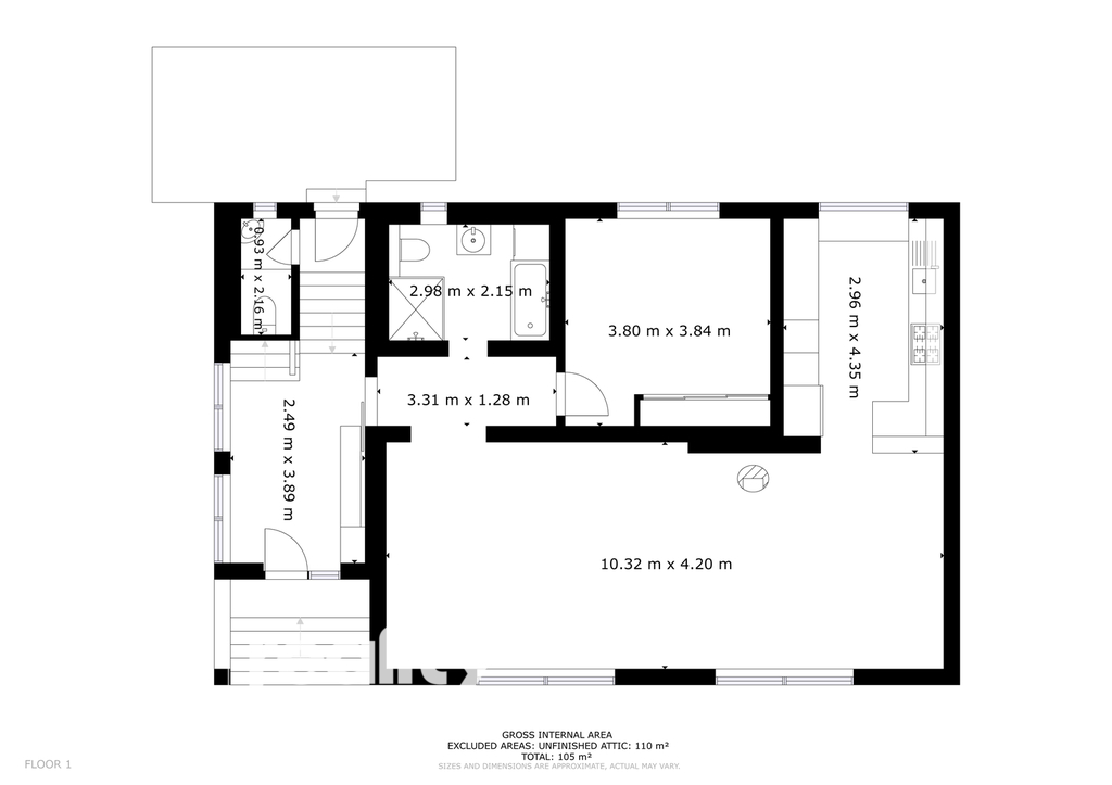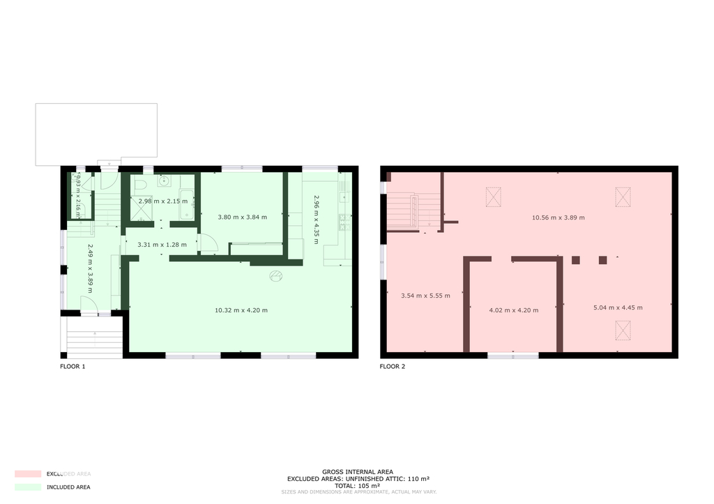 Podkroví: částečně připravené obytné podkroví o ploše dalších 110 m², které umožňuje vytvořit další pokoje podle vlastních představ.