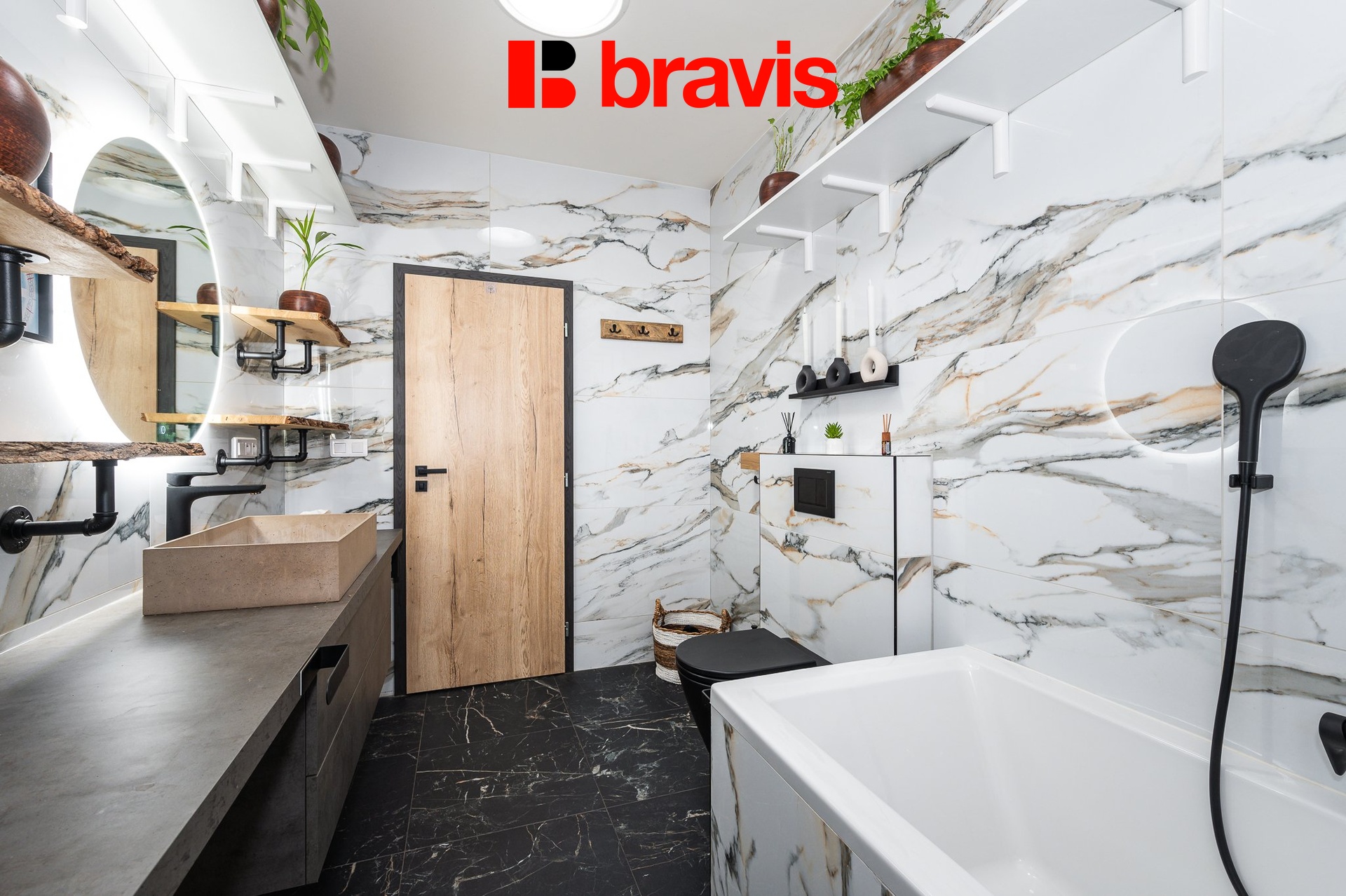 • Dvě koupelny a samostatné WC: Luxusní koupelny vybavené designovými prvky a velkoformátovými obklady vám poskytnou každodenní dávku komfortu.