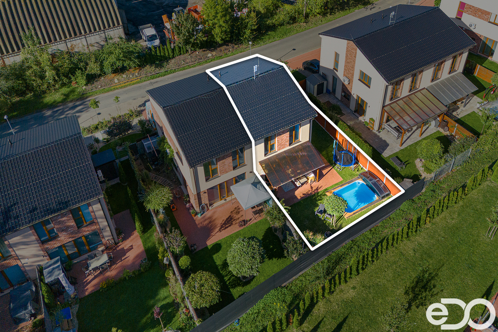Nemovitost stojí na pozemku o výměře 320 m², který nabízí dostatek prostoru pro relaxaci, Z obývacího pokoje je řešen vstup do pergoly a následně na zahradu o výměře cca 200 m2, jejiž prostor zajistí dostatek klidu i využití pro děti. Příslušenstvím je bazén 3x4 m s krytím a pískovou filtracím. Před domem (pozemek patří k domu) je možnost pohodlného parkování pro dvě vozidla. Samozřejmostí je napojení na veškeré sítě.