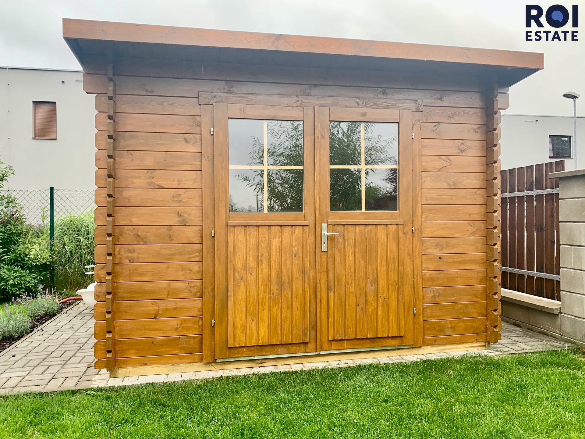 K domu náleží prostorná zahrada se zahradním domkem a posezením, ideální pro odpočinek i rodinná setkání. Parkování je možné na ulici nebo přímo na pozemku, garáž není k dispozici.