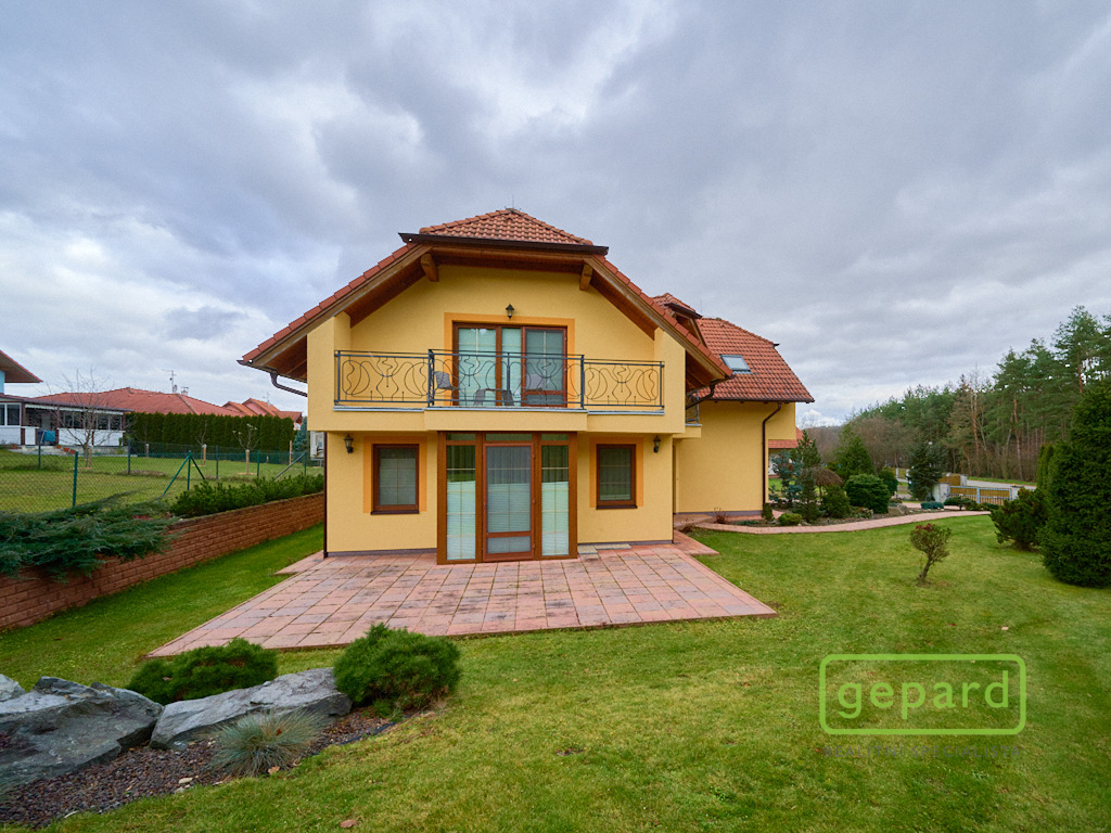 Dále: luxusní kuchyňská vybavená linka (lednice, mrazák, myčka, sporák, atd.), plovoucí podlahy, dlažby a dřevo, TV satelit, zabezpeč. zařízení alarm, videotelefon, ohřev vody elektro bojler, topení podlaha + holandské radiátory s regulací teploty NOBO, klima, obvodové zdi POROTRHERM 40 EKO (40 cm), vestavěné skříně-úložné prostory, dveře masiv + obložky, schodiště ve dřevě masiv, internet, krb, krytina BRAMAC, střešní okna VELUX, komín SCHIEDEL, sítě-voda, elektřina 220/380, strop monolit železobeton, kanalizace, parkování velká garáž + 2x na pozemku před garáží.