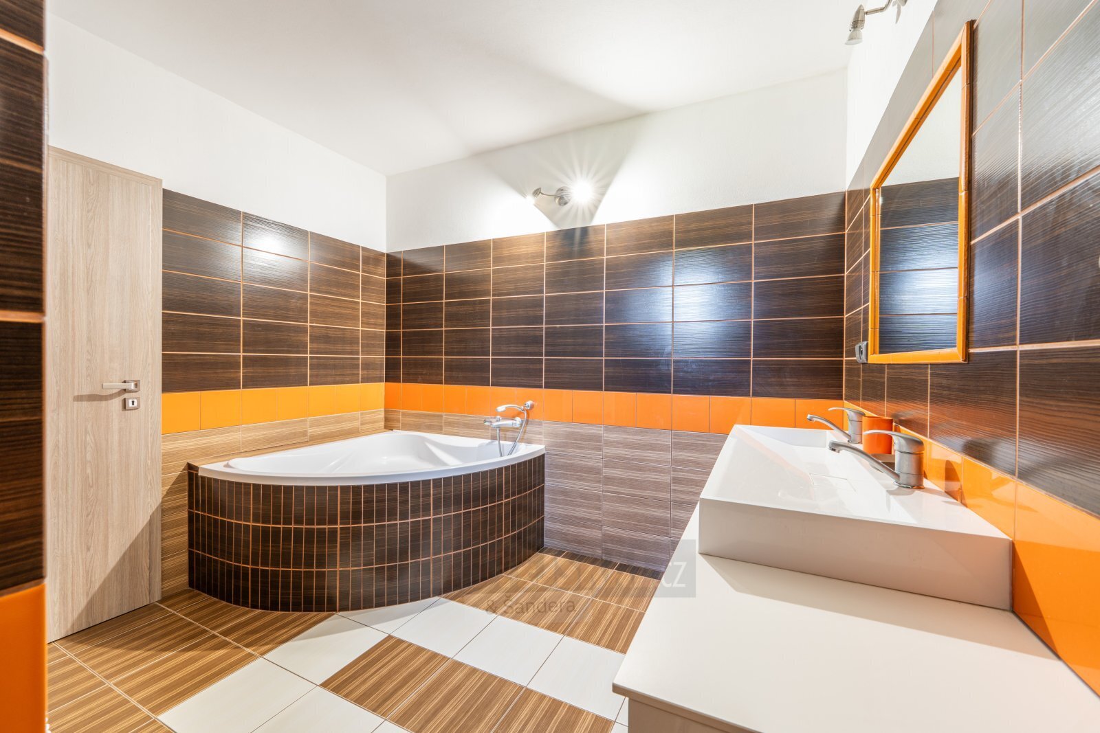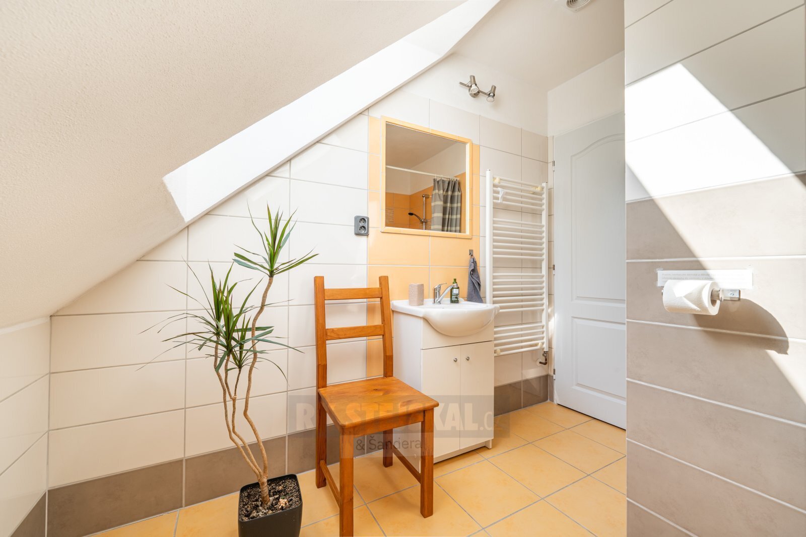 Prostorná koupelna s vanou i sprchou, samostatné WC, vstupní chodba.