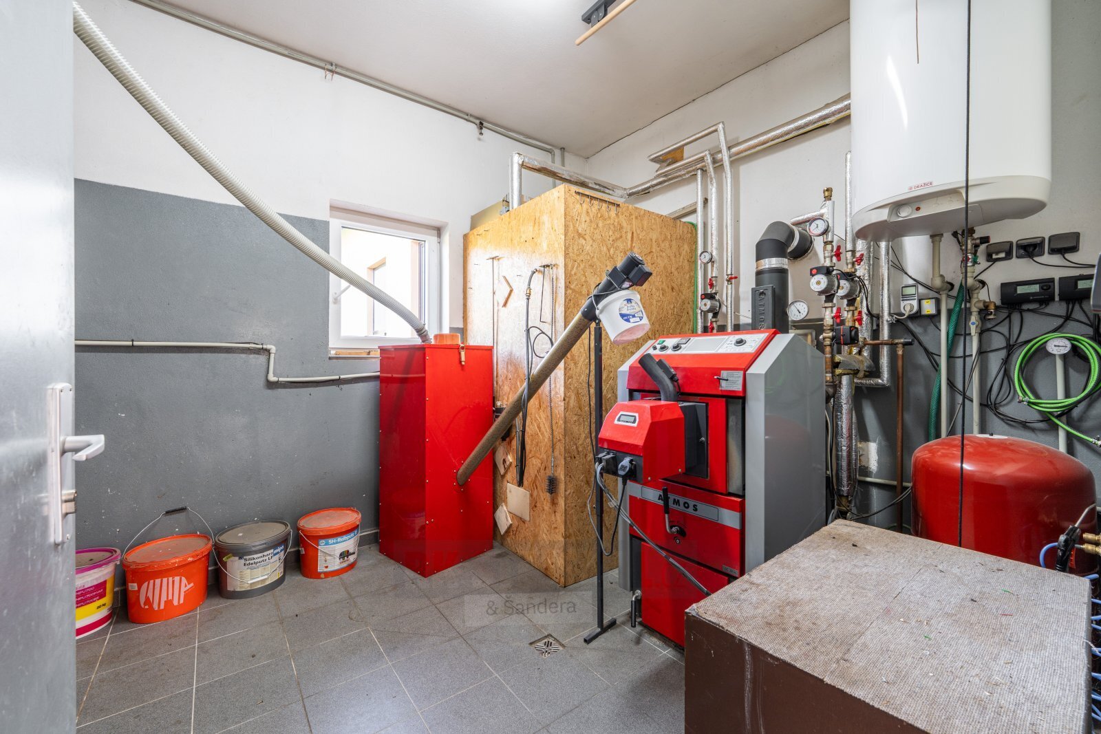 Vlastní vchod, WC pro hosty, kotelna s automatickým kotlem na pelety.