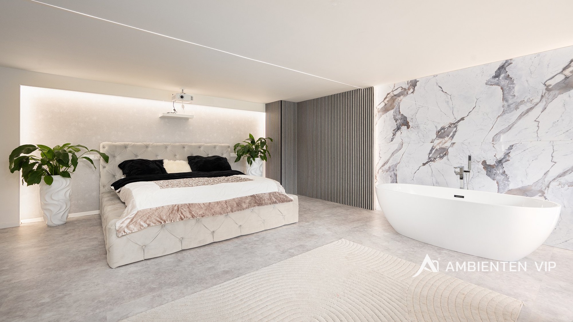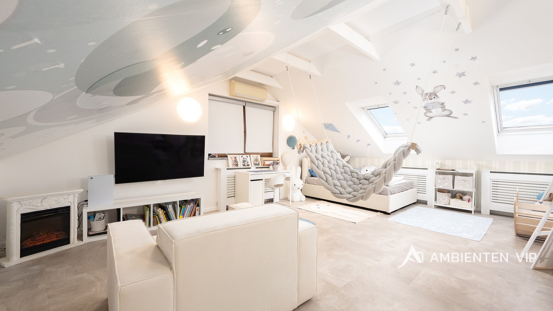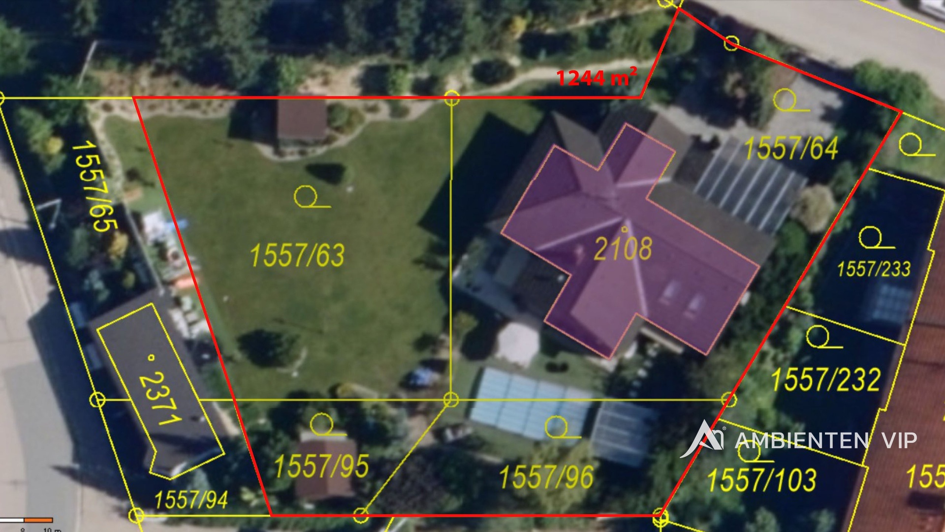 Tato vkusně a moderně zařízená vilka po rekonstrukci vás okouzlí nejen interiérem, ale i prostornou zahradou skýtající různé formy využití. Vstup do domu je přes prosklené zádveří, ze kterého vstoupíte do vzdušné světlé předsíně, která je obložená moderními panely s mramorovou texturou s velkorysým úložným prostorem a vstupem do téměř všech místností domu. Po levé straně naleznete průchod do prostorné šatny s ostrůvkem, přes kterou se prochází do luxusní ložnice. Ta má přímý výstup k bazénu a vířivce. Dominantou ložnice je na zakázku vyrobené dvojlůžko, samostatně stojící vana, umyvadlo a projektor s plátnem. Přímo z postele ložnice máte nádherný pohled do okrasné zahrady. Plátno projektoru lze využít i jako roletu. Otevřená dispozice obývacího pokoje, kuchyně a jídelny je příjemným prostor pro vaši rodinu. Kuchyňská linka je od firmy Mikyska. V rámci obývacího pokoje můžete spočinout na značkové sedačce, využít jídelní stůl s designovými židlemi či připravit pro rodinu výborné menu za pomoci moderních spotřebičů, většinou značky Miele. Za zmínku stojí varná část kuchyně nabízející Combi set pro pánev Wok a přípravu čerstvých paniny. Při přípravě pokrmů, stejně jako při relaxaci na sedačce můžete pozorovat život na zahradě, která obklopuje celý dům. Z obývací části je vstup na prostornou terasu až ke krytému bazénu se slanou vodou a protiproudem. Odpočinkovou zónu vkusně doplňuje vzrostlá středomořská vegetace v elegantních květináčích. Pokud se vydáte z předsíně vpravo, zavítáte do jednoho z dětských pokojů. V budoucnosti lze i tento pokoj propojit s terasou a přímým vstupem na zahradu. Vedle dětského pokoje se nachází technická místnost s pračkou a sušičkou a dále vstup do koupelny s toaletou a sprchovým koutem a dvěma umyvadly. Vytápění domu je přes plynový kotel Baxi. V přízemí domu je podlahové vytápění. Ve druhém patře domu se nachází dětský pokoj, který majitelka vkusně vyzdobila dětskou tapetou a vytvořila pohádkové království pro vaše děti. Celá zahrada je oplocená dřevěným plotem. Nabídne vám prostor, jak pro váš odpočinek, tak lze i část zahrady využít jako druhé stavební místo. Na pozemku máte soukromí, jelikož je zeleň v zahradě poměrně vzrostlá. Na zahradě se nachází domek na nářadí a herní plocha pro děti. Zdivo domu je cihla s obkladem Klinker. Okna jsou plastová s izolačním dvojsklem. Rodinný dům prošel nákladnou rekonstrukcí, která se uskutečnila v roce 2021 a 2024.