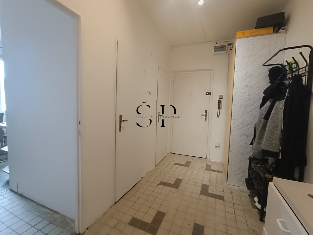 Byt je prakticky řešený – z prostorné předsíně je vstup do toalety, koupelny, obývacího pokoje a dále chodbou do kuchyně, ze které je přístup do dalšího pokoje.