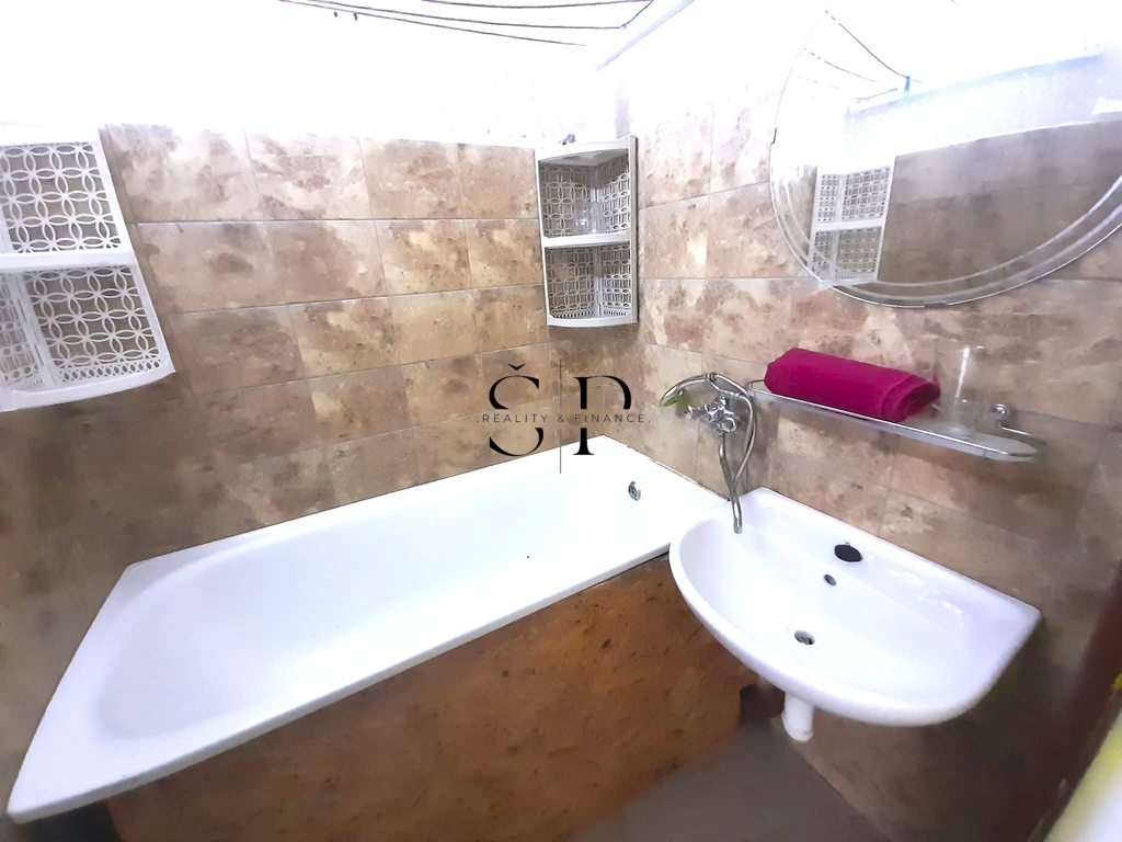 Koupelna je vybavena vanou a umyvadlem, toaleta je samostatná.