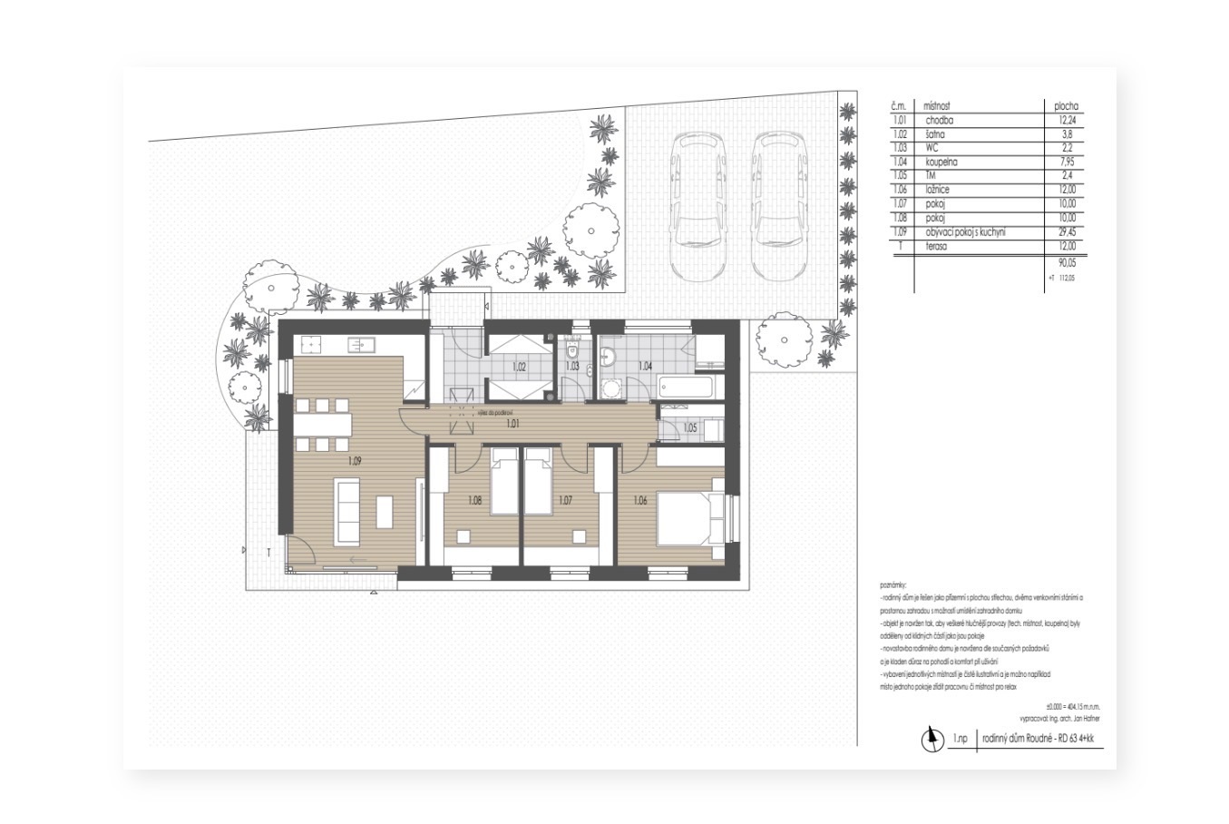 V ceně není: kuch.linka, svítidla, žaluzie, klimatizace, komín, nábytek, pergola, finální úprava zahrady.