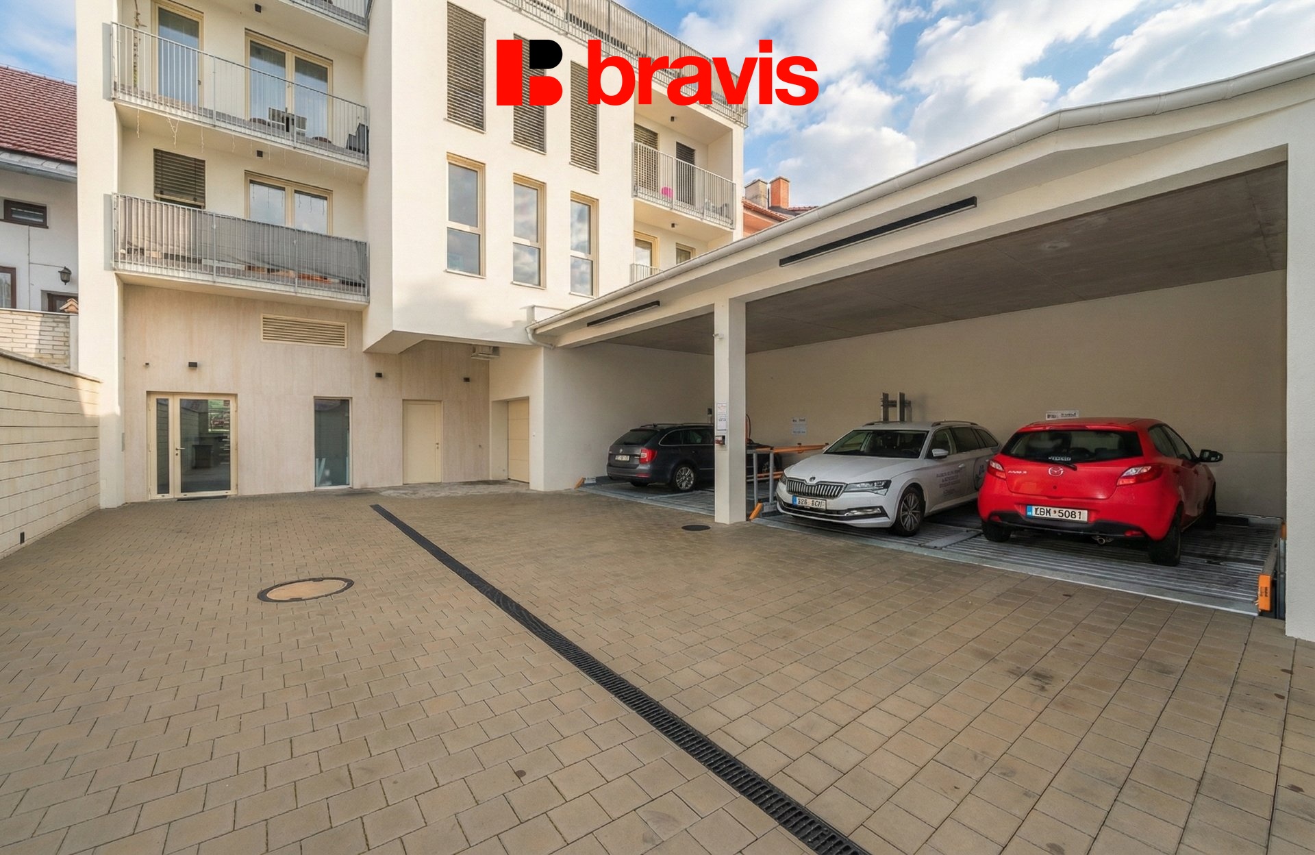 Parkovací místo v zakládacím systému v uzavřeném areálu za 1.500 Kč/měsíc.