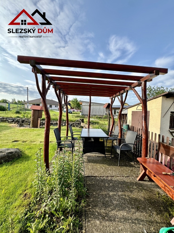 Pozemek je rovinatý, oplocený a velmi dobře udržovaný. Zahrada má okrasný charakter, nachází se zde skalky, zeleň, venkovní posezení a vlastní studna s užitkovou vodou vhodnou pro zalévání. Parkování je pohodlně řešeno přímo na pozemku.