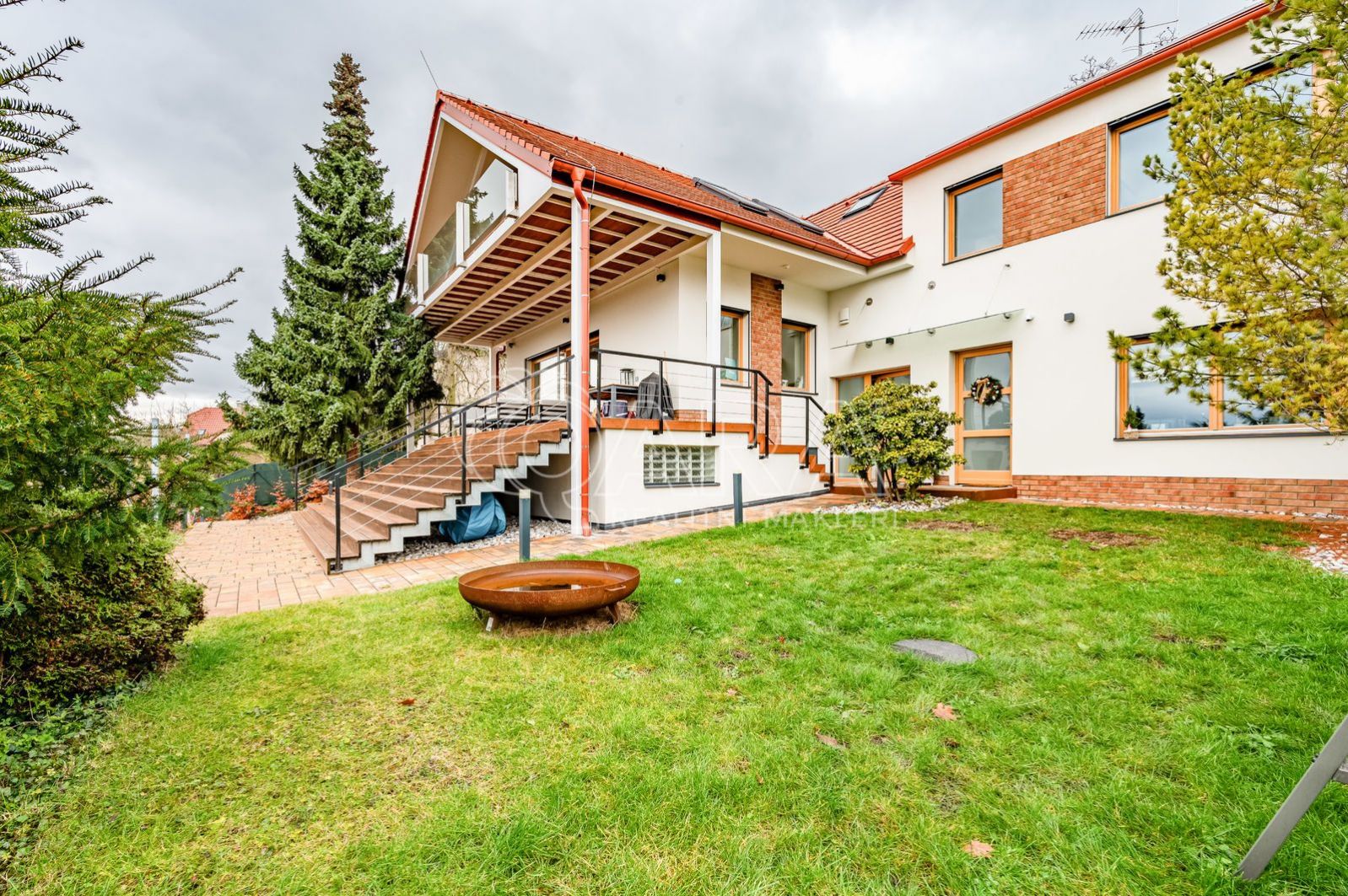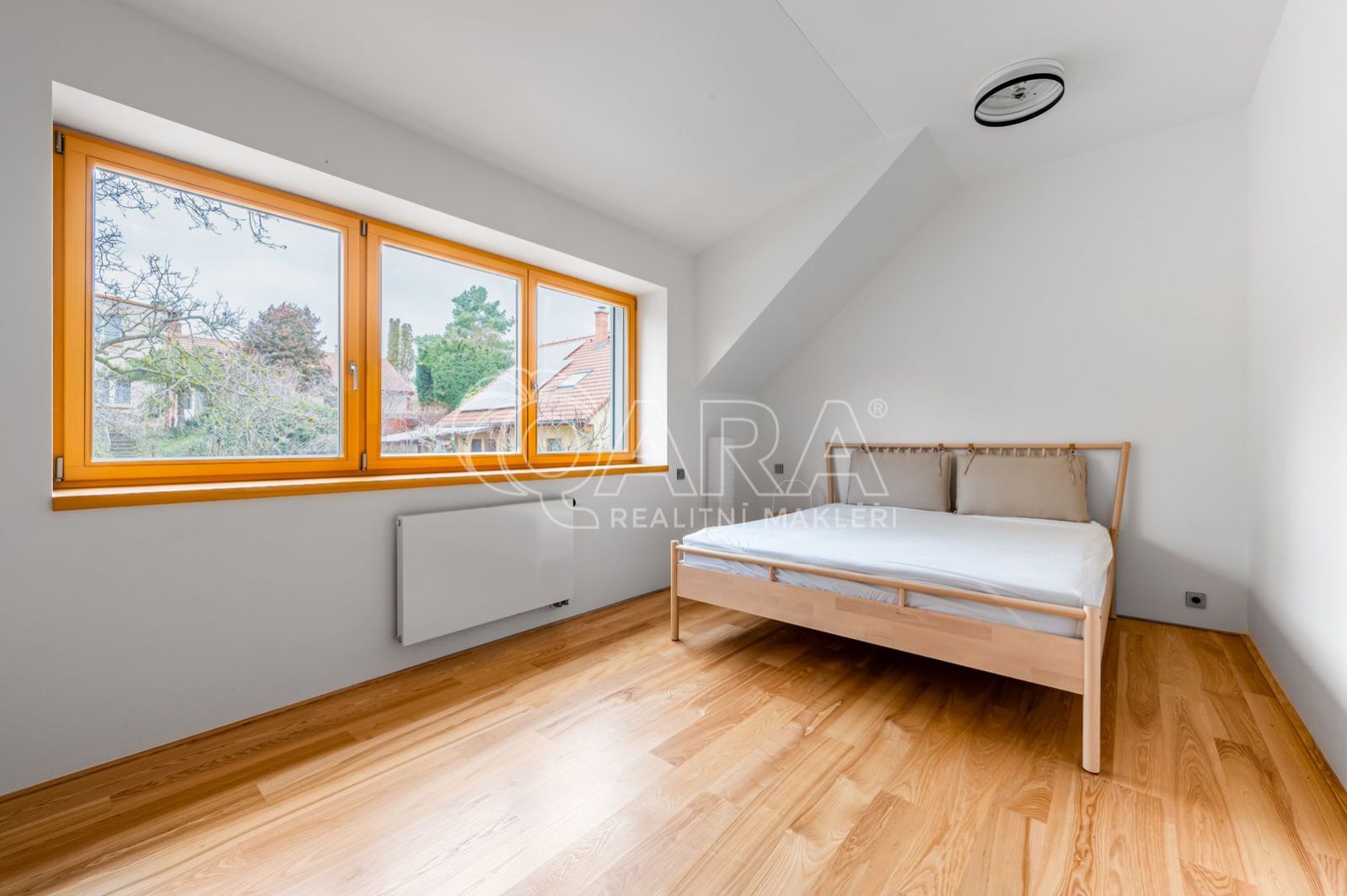 Nabízíme k pronájmu nadstandardní, nízkoenergetickou reprezentativní novostavbu vhodnou k využití jako kanceláře či sídlo společnosti. Vila se nachází na samostatném pozemku a disponuje dvěma oddělenými jednotkami, celkovou užitnou plochou 393 m a dispozicí 7+2kk. K dispozici jsou tři terasy, parkovací stání až pro 5 vozů na pozemku a jedinečný výhled na Tiché údolí a severní část Prahy. Velkým benefitem je také výborná dostupnost do centra metropole.