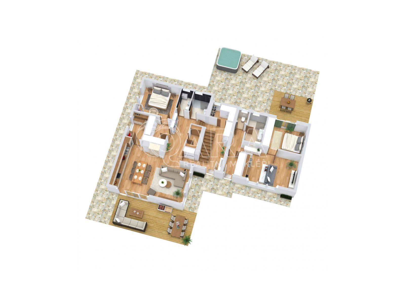 Vila je provedena ve vysokém standardu podlahy z jasanu, skleněná zábradlí, klimatizace ve všech obytných místnostech. Dům je dále vybaven fotovoltaickými panely, centrálním vysavačem, kamerovým systémem a na zahradě je automatická závlaha. Provozní náklady jsou velmi nízké.