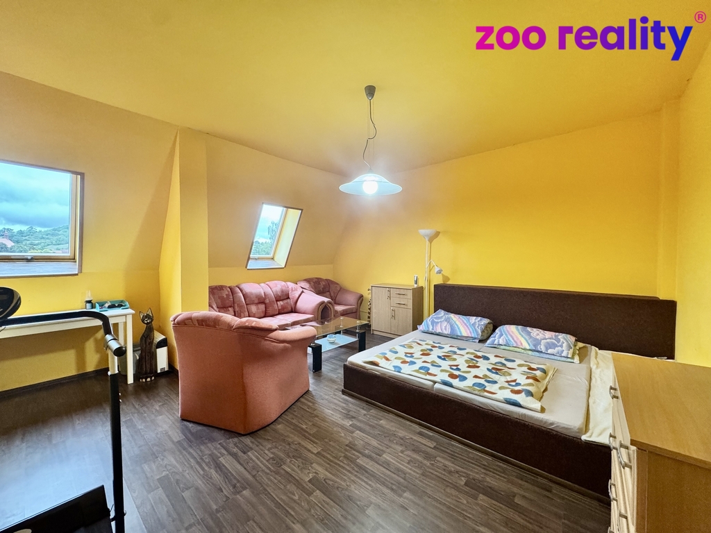 = podkroví = další dva pokoje k užívání a půdní prostor vybízí k dobudování další bytové jednotky, (42 m2).