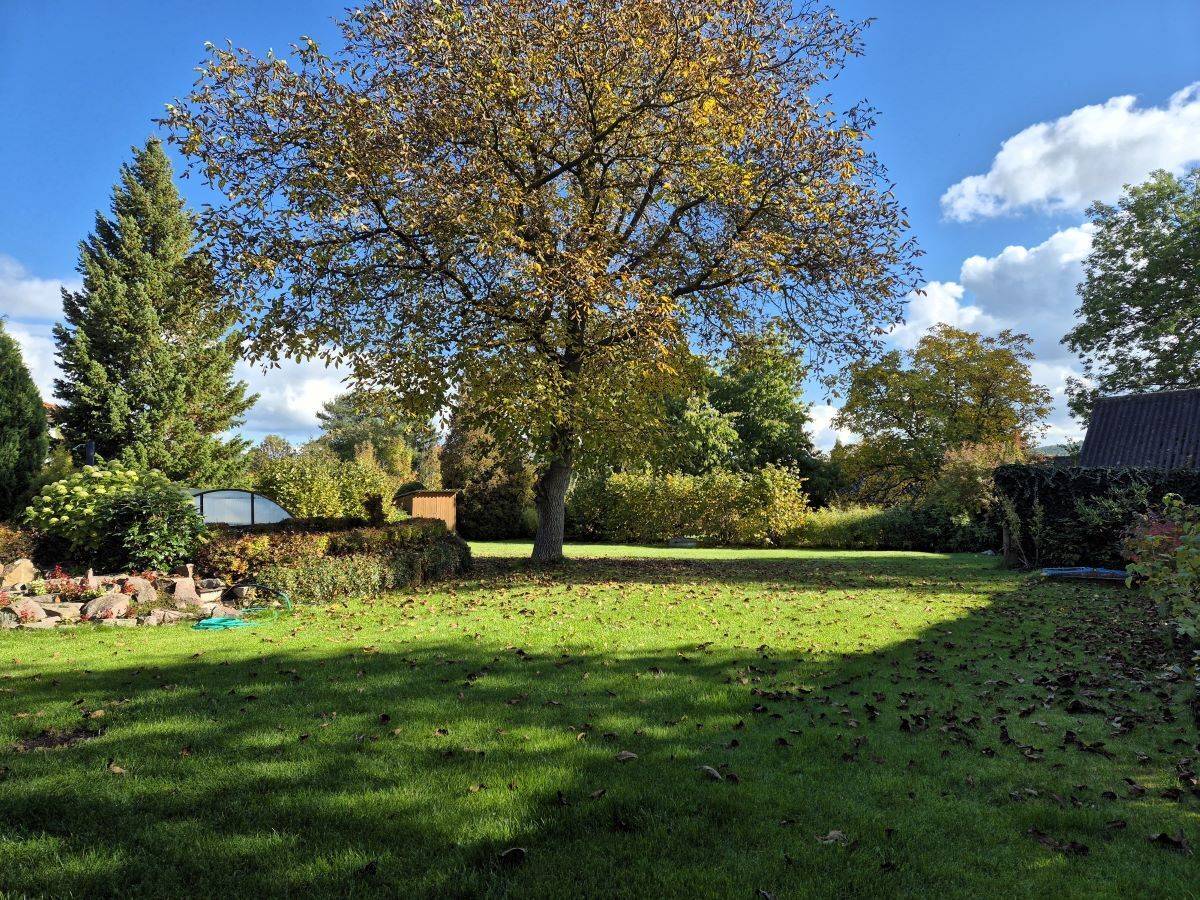 Oplocený pozemek domu je orientován na východ a příjemnou atmosféru dotváří okrasné keře, květiny a také travní porost nebo vzrostlé stromy, jenž zajišťují soukromí při pobývání na zahradě nebo terase. Z terasy domu je přístupný krytý bazén (6 x 3 m) s filtrací a slanou vodou. Vstup na pozemek je situován ze západní strany bránou, a ze severní strany domu byla přistavěna garáž a kryté parkovací stání pro další auta. K uskladnění zahradnických a jiných potřeb slouží zahradní domek na okraji zahrady.