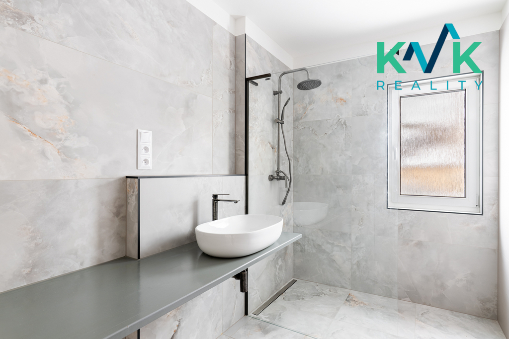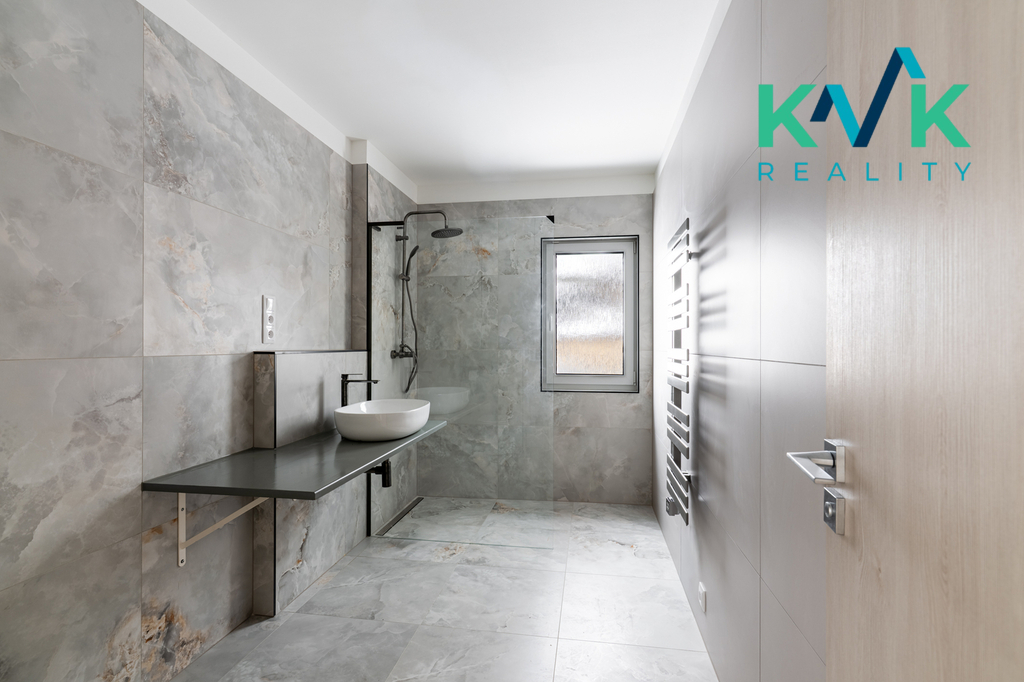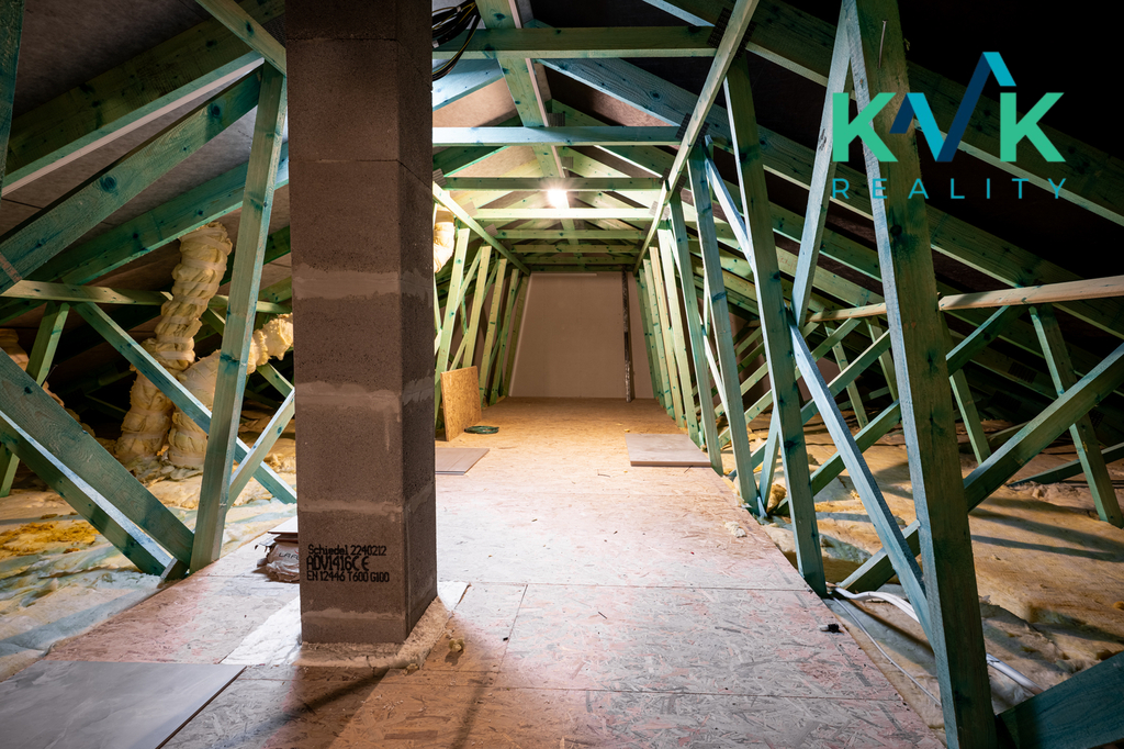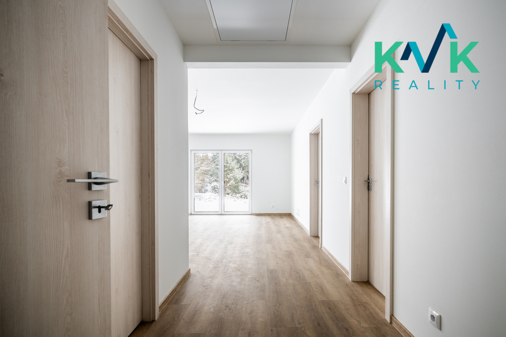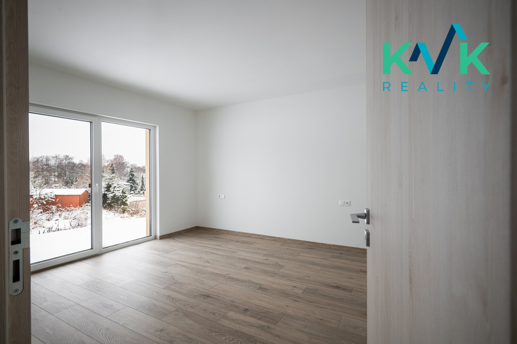Dům 4kk s užitnou plochou 160 m2 je řešen prakticky, vybaven kvalitními materiály a moderními technologiemi. Splňuje nároky na energetickou úspornost s certifikací A. Dispozice této nemovitosti je řešená velmi intuitivně. Z předsíně se po pravé straně nachází technická místnost, kde je srdce domu se zabudovanou fotovoltarikou jako zdroj tepla a také bojler. Vedle se nachází spíž pro uložení potravin. Naproti je první pokoj, který sousedí s koupenou. Dále po pravé straně poskytuje pohodlí s výhledem do zahrady druhý pokoj. Společenská místnost s krbovými kamny (výkon 12-14 kW), klimatizací a prostorem pro kuchyňskou linku je situovaná na jižní stranu. Celý tento prostor má dva vstupy na zahradu. Podlahy ve společenské místnosti jsou pokryté vinylem o tloušťce 1 cm, v ložnicích se projdeme po laminátu o tloušťce 1 cm a v technických místnostech se nachází dlažba. V celém domě je položeno pro podlahové topení (folie a kabel) a zabudované termostaty ovládané přes Wi-Fi, jenž zajišťuje příjemné teplo v každém ročním období. Topení je doplněno klimatizací, která nabízí jak chlazení, tak vytápění, což přispívá k maximálnímu komfortu bydlení.
