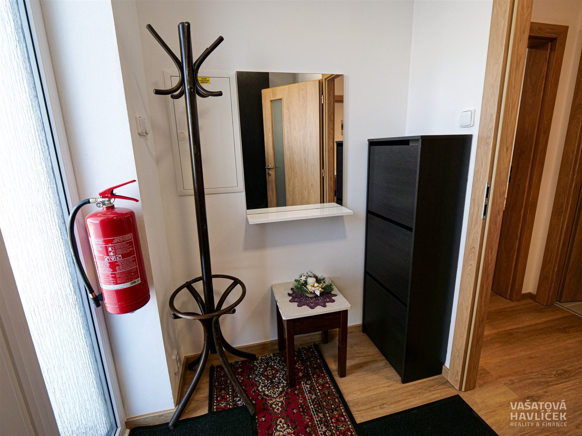 > šatní skříň, věšák a botník