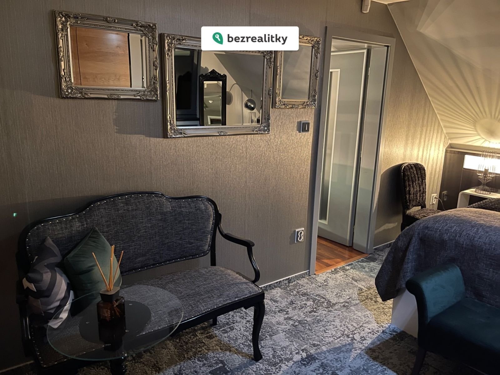 V patře domu se nachází dva samostatné pokoje. První lze využít jako dětský pokoj nebo pracovnu a je vybaven sprchovým koutem, WC a vestavěnou skříní. Druhý pokoj slouží jako hlavní ložnice s nábytkem na míru, vestavěnými skříněmi a pracovním stolem. V celém domě jsou sjednocené podlahy, kvalitní povrchy a designové interiérové dveře.
