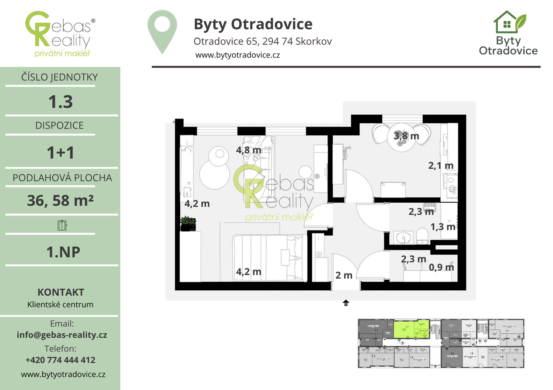 | Dispozice/podlahová plocha: | 1+1/36 m² |