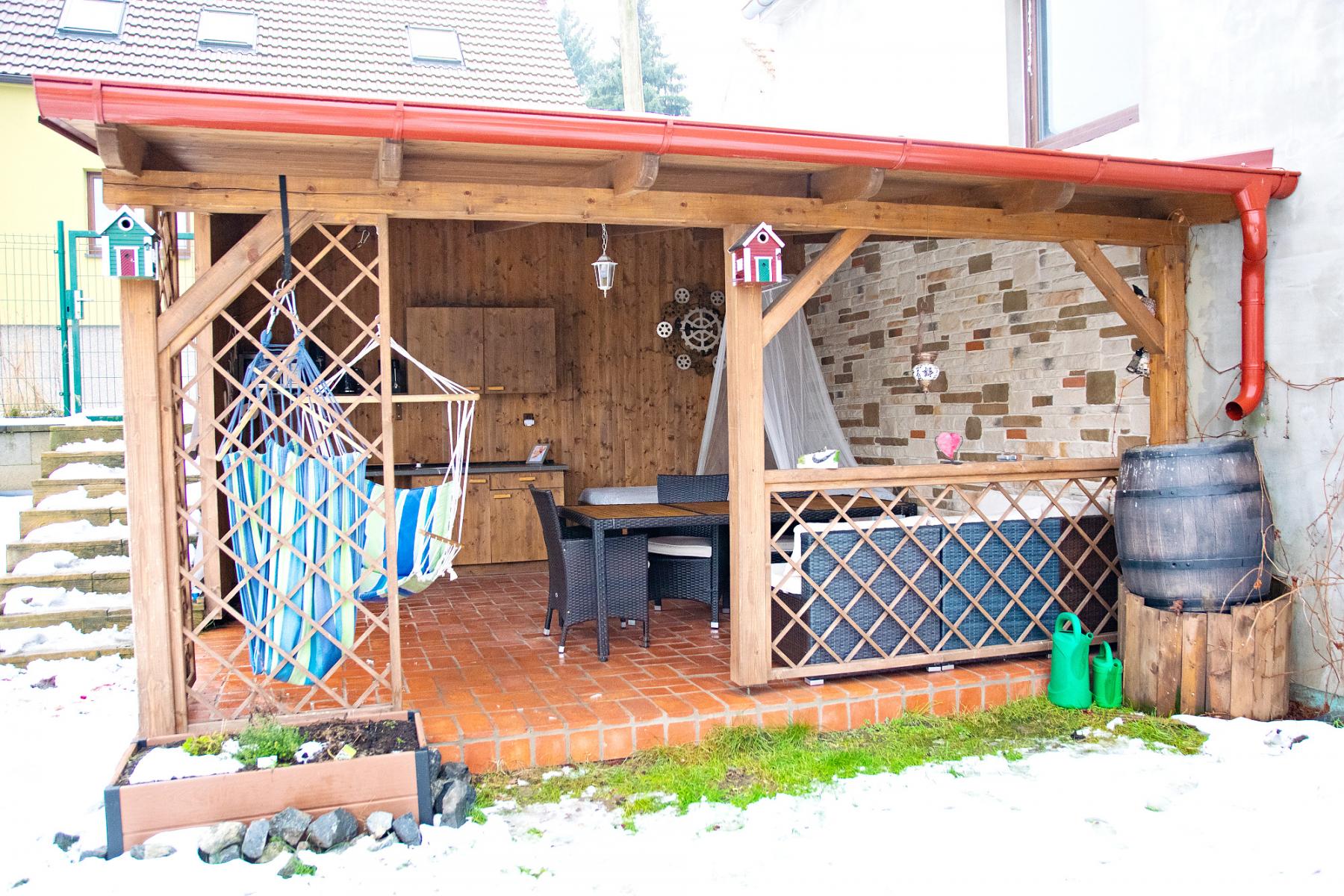 Pozemek o výměře 777 m nabízí maximální míru soukromí. Součástí je krytý bazén, venkovní pergola a dostatek místa pro parkování několika vozů.. Exteriér domu byl kompletně navržen a realizován v roce 2024 zahrada, pergola, výsadba zeleně, okrasné skalky i nová zámková dlažba tvoří harmonický celek bez nutnosti dalších investic.