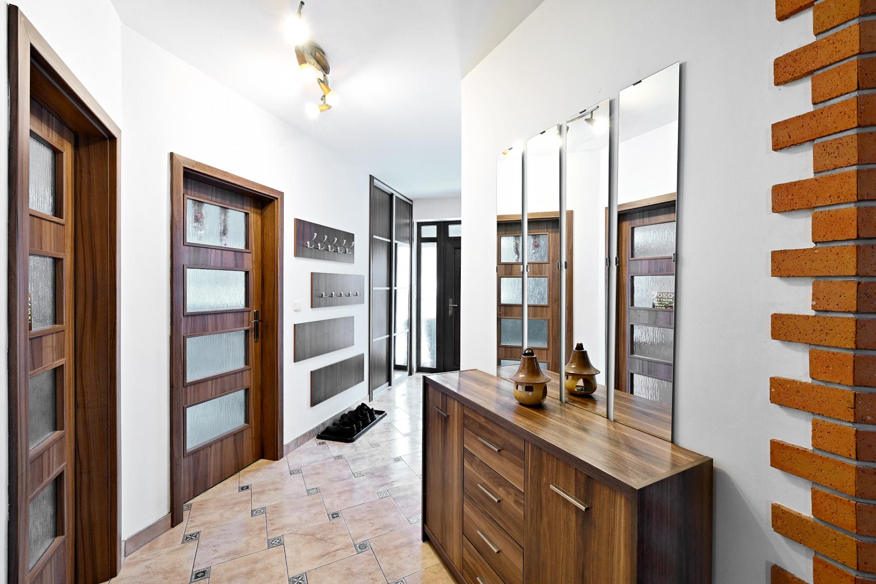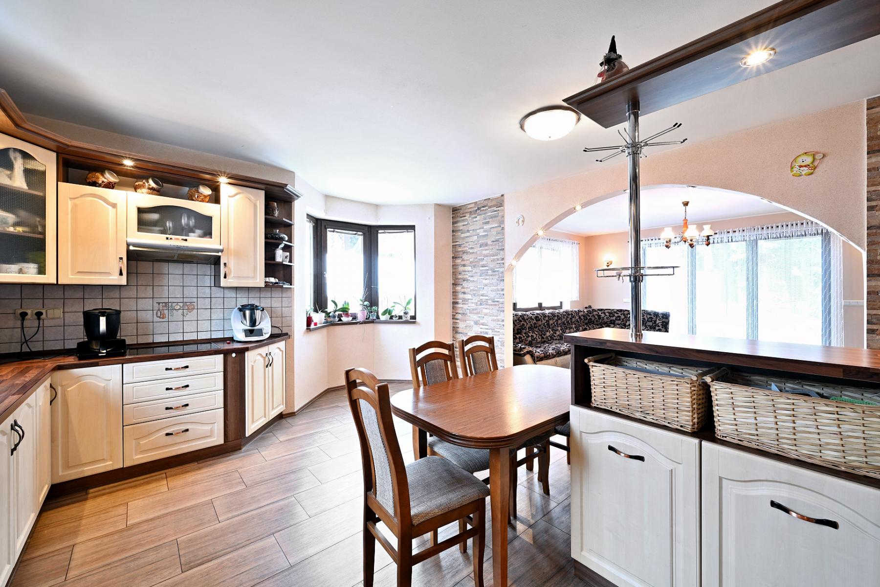 Součástí přízemí je samostatný komerční prostor s vlastní toaletou, ideální pro kancelář, studio, ordinaci, showroom či jiné podnikání, které vyžaduje oddělení od soukromého bydlení. Tento prvek činí dům výjimečným a výrazně rozšiřuje možnosti jeho využití.