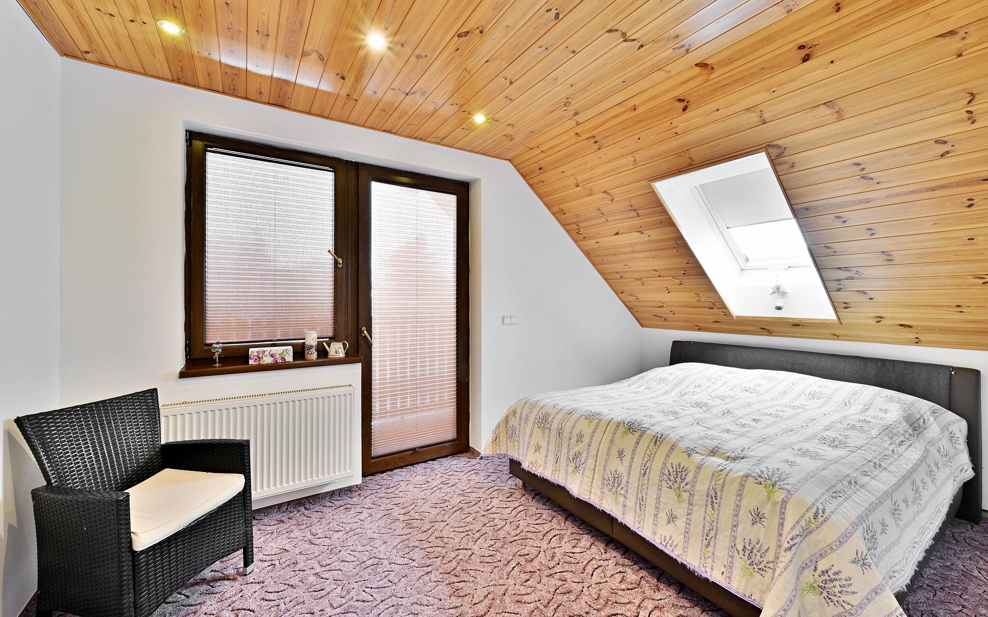 V patře se nachází tři ložnice, pracovna a koupelna s rohovou vanou, které poskytují maximální komfort a soukromí. Dispozice umožňuje flexibilní využití dle životního stylu nového majitele rodinné bydlení, home office i reprezentativní zázemí.