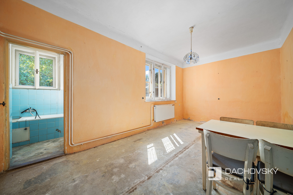 Podkroví má vysokou světlou výšku a nabízí prostor pro rozšíření o další obytnou část nebo velkorysé úložné prostory. Na pozemku se dále nachází volně stojící garáž a samostatná přístavba – technická místnost / zahradní domek. Dům je určen ke kompletní rekonstrukci, nicméně je udržovaný, čistý a kompletně vyklizený.