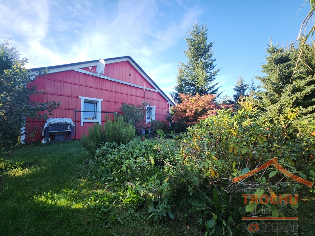 Dovolujeme si Vám nabídnout k prodeji přízemní zateplenou dřevostavbu rodinného domu typu bungalov v obci Smržov, která se nachází 10 km od Hradce Králové, 8 minut od sjezdu dálnice D11, 7 minut od Smiřic. Tento dům s velmi dobrou konstrukcí je ideální volbou pro ty, kteří hledají útulné a pohodlné bydlení . Vnitřní příčky jsou vyzděné. Nachází se na pozemku o rozloze 853 m2, který nabízí dostatek prostoru pro odpočinek a různé volnočasové aktivity. Chodbou, ze které je vstup i do technické místnosti s koupelnou, se dostanete do moderně řešeného obývacího pokoje s jídelnou a kuchyní. Dominantou obývacího pokoje je litinová krbová vložka 17 kW, která má dvojité spalování a s přehledem vytopí celý dům. Náklady na topení jsou pak cca 14 tis. ročně a celkové náklady na provoz domu jsou opravdu velmi nízké. Dále pak z chodby vstup do dalších dvou samostatných, neprůchozích pokojů (v jednom pokoji vsazená infrasauna, součástí druhého je šatna). Toaleta je zvlášť. Z obývacího pokoje se dostaneme na terasu cca 18 m2 s výhledem na vsazené samočistící, koupací jezírko 30 m2 plné ozdobných koi kaprů. Podlahy PVC a dlažba, okna plastová trojskla. Dům má vlastní studnu s pitnou vodou napojenou do domu, odpady řešeny ČOV. Příprava na elektrokotel a majitel má pro případ blackoutu i elektrocentrálu. Výborné autobusové spojení Smržov – Smiřice, Hradec Králové a Jaroměř. V obci je dětské hřiště, přírodní koupaliště, restaurace a připravuje se výstavba multifunkčního sportovního hřiště (tenis, fotbal, volejbal, floorbal, atd.). Dům je ideální volbou pro menší rodinu nebo pár, který požaduje komfortní bydlení. Díky užitné ploše 125 m2 si můžete užívat prostorného a prakticky řešeného interiéru. Výhodou dřevostavby je také přirozeně dobrá izolace a nízké náklady na vytápění. Pokud Vás dům zaujal, neváhejte nám napsat nebo zavolat a rádi Vám vše ukážeme osobně. Prohlídky jsou možné po předchozí domluvě. Pro více informací o této nemovitosti nebo sjednání prohlídky nás prosím kontaktujte nebo vyplňte níže uvedený formulář, rádi Vám pomůžeme.