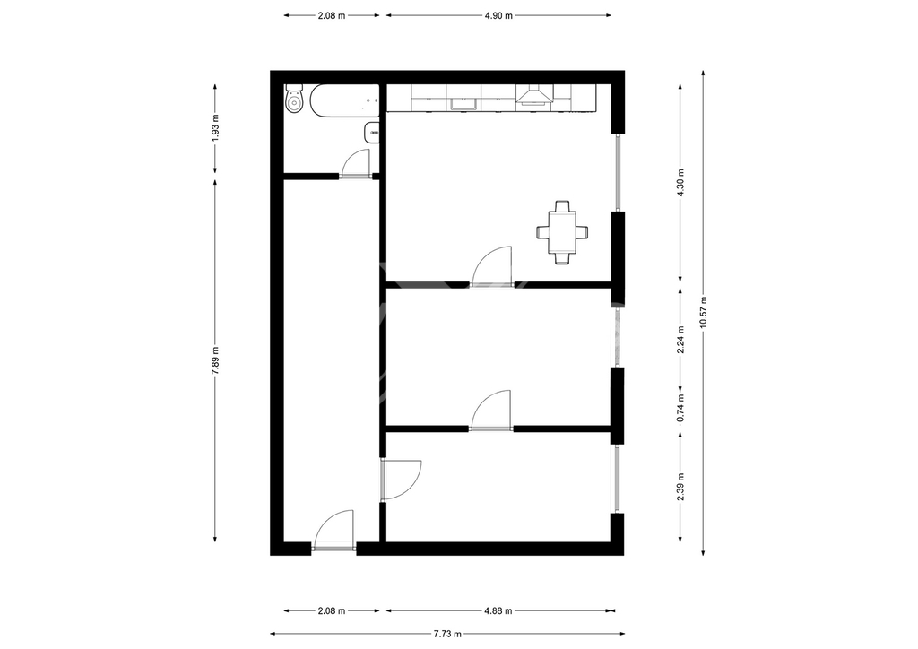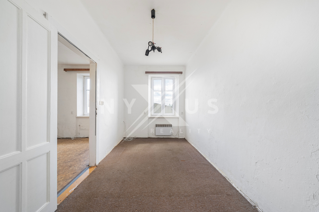 Dispozičně nabízí tři místnosti, kde v jedné z nich si vytvoříte samostatnou kuchyň, koupelnu, WC a předsíň s možností vytvoření úložného prostoru.