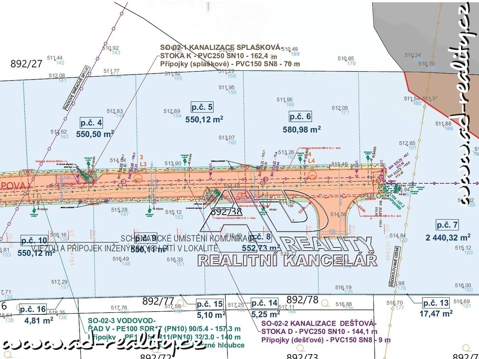 Inženýrské sítě: přípojky inženýrských sítí (elektrika + obecní vodovod + kanalizace + zemní plyn, + datové rozvody, připojení O2) jsou ukončeny na hranici pozemku (kaplička EL, revizní šachta kanalizace, vodovodní šachta vodovodu, uzavírací armatura zemního plynu). Dále se na hranici pozemku ( v kapličce) nachází ukončení datových kabelů, či internetu). Přístup je na pozemek z jižní strany z místní obslužné asfaltové komunikace, která přechází plynule do asfaltové komunikace samotného ZTV, jenž je jeho obsahem nejen veřejné osvětlení ale i odstavná parkovací stání včetně stání pro invalidy.