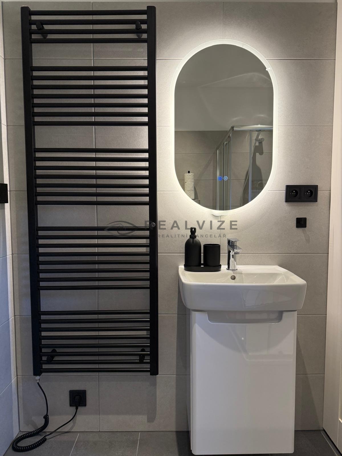 A teď už k té chytré domácnosti! Celý dům má podlahové vytápění a je vybaven systémem LOXONE, který umožňuje jednoduché ovládání žaluzií, osvětlení s nočním režimem i zabudovaných reproduktorů včetně těch v koupelně.