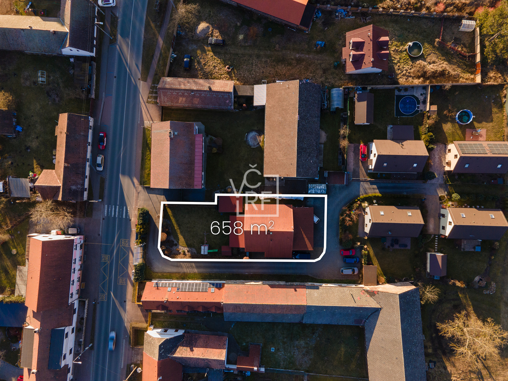 Celková plocha pozemku včetně zastavěné plochy činí 658 m².