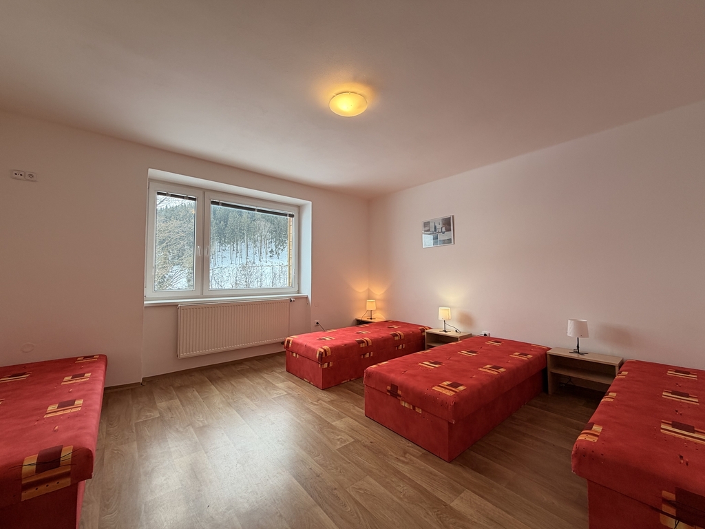 Apartmán je plně vybavený – disponuje vlastní koupelnou, WC i kuchyňkou a je součástí jednoho ze dvou samostatných objektů. Hostům je k dispozici prostorná společenská místnost a po domluvě také infrasauna, což výrazně zvyšuje komfort pobytu i celkovou obsazenost.