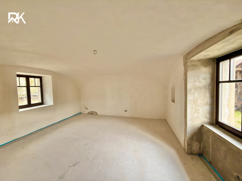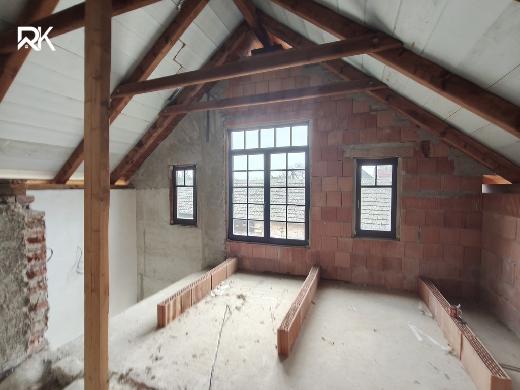 Na pozemku se dále nachází prostorná stodola, výměnek (samostatná obytná jednotka), dílna a sklep. Velkou přidanou hodnotou je také pečlivě uskladněný stavební materiál vysoké kvality (střešní tašky, cihly, izolace aj.), který umožňuje budoucímu majiteli plynule navázat na další úpravy bez nutnosti okamžitých investic.