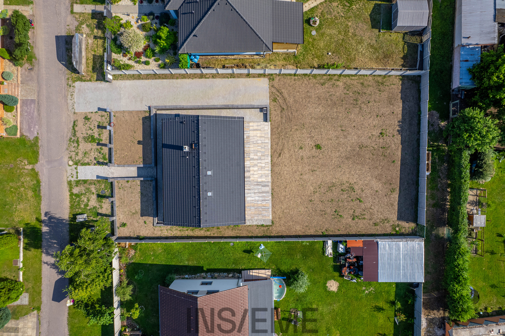 Pozemek o velikosti 910 m2 umožňuje realizovat vlastní představy o zahradě, dětském hřišti nebo relaxační zóně s bazénem. Na zahradu navazuje terasa s přímým vstupem z obývacího pokoje, ideální pro venkovní posezení, letní grilování nebo relaxaci u ranní kávy. Díky orientaci parcely je zajištěno dostatek slunce po celý den. Na pozemku je připraveno parkovací stání až pro tři automobily.