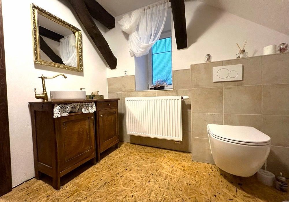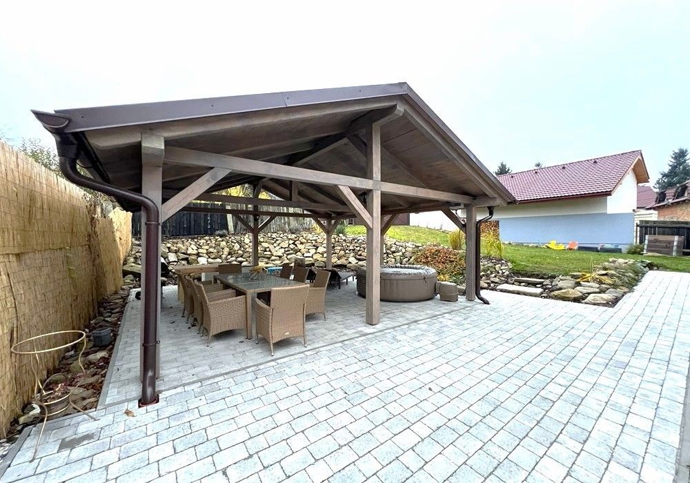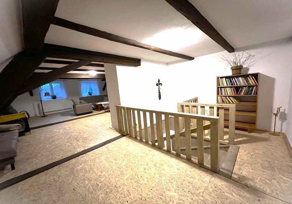 Samostatně stojící dům po kompletní rekonstrukci a přestavbě s kompletním provozním příslušenstvím a vybavením, vedlejšími stavbami, terasou a navazující zahradou o celkové výměře pozemků 584 m2 v klidné okrajové části obce. Přízemní nepodsklepený RD o dispozici obytných prostor 5+1 ve dvou nadzemních podlažích (přízemí+podkroví) s kompletním provozním zázemím, vkusně řešenými interiéry, nyní sloužící ke komerčním krátkodobým pronájmům k celoročnímu rekreačnímu využití. Objekt vesnického domu byl před rokem kompletně přestavěn, modernizován, adaptován do současné podoby a následně využíván ke komerčnímu rekreačnímu pronájmu se zajištěným celoročním výnosem. V případě využití nemovitosti k vlastnímu trvalému či rekreačnímu bydlení je objekt RD připraven k okamžitému užívání „na klíč“ dle představ nového vlastníka. ENB třída: „G“ průkaz nezpracován. Na objekt RD navazují vlastní pozemky s vedlejšími drobnými stavbami (letní pergola, venkovní sezení, kolna, sklad), zpevněnými venkovními úpravami, udržovaným travním porostem a okrasnými dřevinami s klidovou, užitkovou a manipulační plochou, tvořící jeden uzavřený oplocený soubor nemovitostí původní venkovské usedlosti. Nemovitosti jsou situovány v mírně svažitém terénu s orientací pozemků na severozápad, navazují na veřejné prostranství po celé šíři pozemků na příjezdovou veřejnou komunikaci se zpevněným vjezdem a vstupem s dobrou dopravní dostupností. Nabízené nemovitosti jsou vhodné a využitelné k trvalému rodinnému bydlení, celoroční rekreaci, či zachování stávajícího komerčního krátkodobého pronájmu nemovitosti se zajímavým výnosem z krátkodobých nájmů. Lokace nemovitosti v klidném přírodním prostředí malebné historické obce s navazující zástavbou vesnických stavení s dostupností základních služeb a infrastruktury v cca 5 km vzdálené obci Stráž, cca 15 km od sjezdu na dálnici D5 PlzeňRozvadov. Předností nabízených nemovitostí je velmi dobrý technický stav nemovitosti po kompletní rekonstrukci dokončené v r. 2025, kompletní provozní vybavenost objektu, aktuální okamžitý výnos z krátkodobých komerčních pronájmů, lokace nemovitostí v klidné okrajové části obce v přírodní venkovské krajině, blízkost dálnice D5 a možnost okamžitého užívání a bydlení. Dispozice: přízemí vstup, předsíň se schodištěm, obytná místnost s krbovými kamny, kuchyně s jídelnou, 2x ložnice, koupelna (sprchový kout, umyvadlo), WC, technická místnost… terasa. Podkroví schodiště, hala, otevřený obytný podkrovní prostor, ložnice, koupelna s WC (sprchový kout, umyvadlo, WC). Přístup z veřejné zpevněné komunikace (vstup + vjezd), elektřina (220/380 V), napojeno na veřejný vodovod, odkanalizováno přes septik s přepadem do povrchové kanalizace, bez napojení na rozvod plynu, internetair. Vytápění: centrální tepelným čerpadlem (voda/vzduch) + lokální (doplňkové) na tuhá paliva krbová kamna. Zastavěná plocha RD: 128 m2, vnitřní užitní plocha objektu: cca 210 m2, plocha pozemků celkem: 584 m2