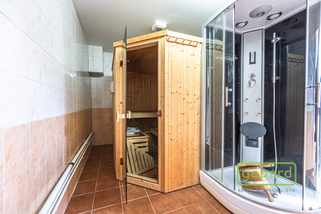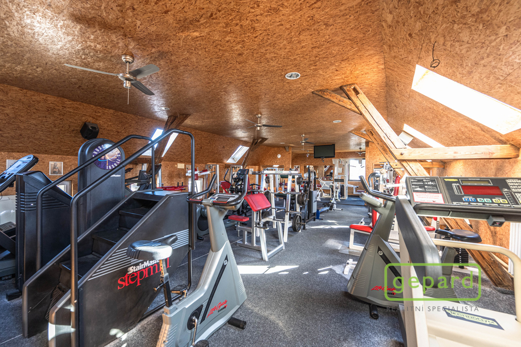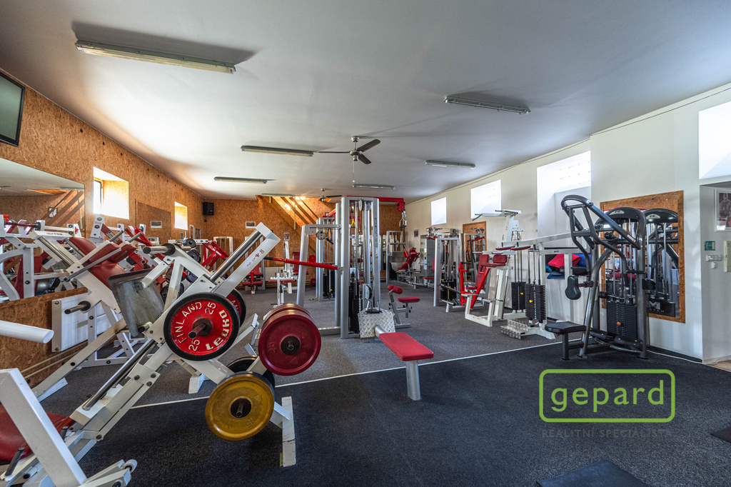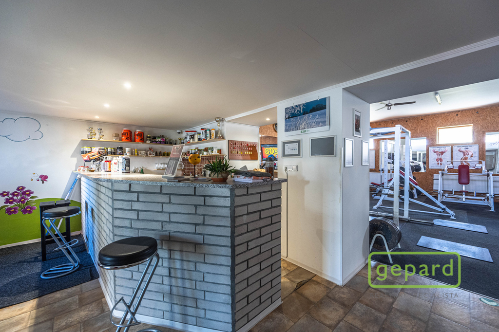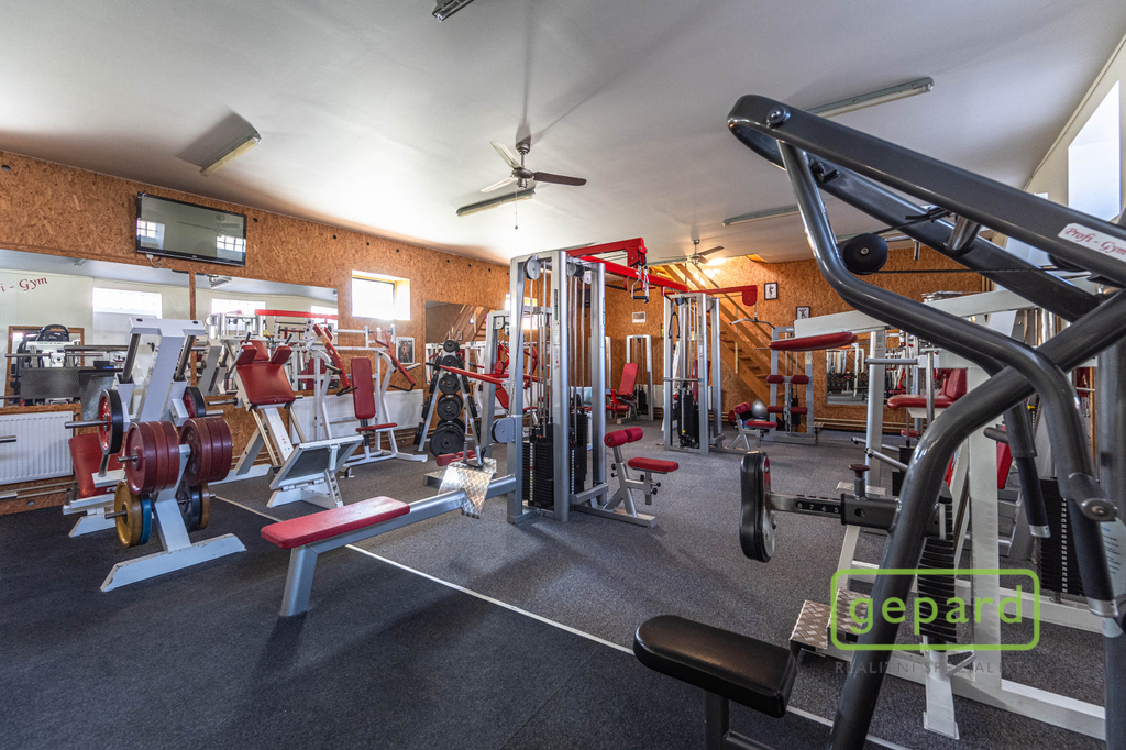 Vedlejší budova o ploše 357,13 m² je určena ke komerčnímu využití a v současnosti slouží jako plně vybavené fitcentrum se saunou a soláriem. Objekt má dvě nadzemní podlaží a kompletní sociální zázemí (šatny, sprchy, toalety). Vytápění a ohřev vody zajišťuje plynový kotel. Nový majitel může v zavedeném provozu pokračovat nebo prostor přizpůsobit vlastním potřebám (wellness, studio, kanceláře apod.).