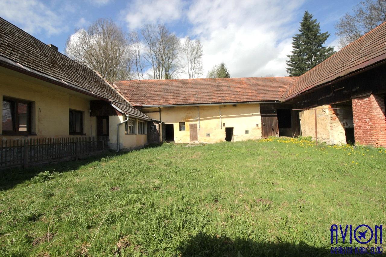 Rozlehlý dvůr je ohraničen obytnou částí a velkou průchozí stodolou, kterou se prochází na zadní zahradu a otevřenou další stodolou. Za průchozí stodolou je část svažitého pozemku na který navazuje rovinatá část zahrady s krásným výhledem na město Strmilov s přístupem i z druhé strany pozemku. Pozemek je téměř celý zatravněný a orientovaný na slunnou stranu. Nemovitost se nachází na kraji města, za pozemkem je jen několik chatek. Bezproblémový příjezd z vedlejší komunikace, dnes již téměř bez provozu. Z boku domu se nachází ještě další menší zahrádka.